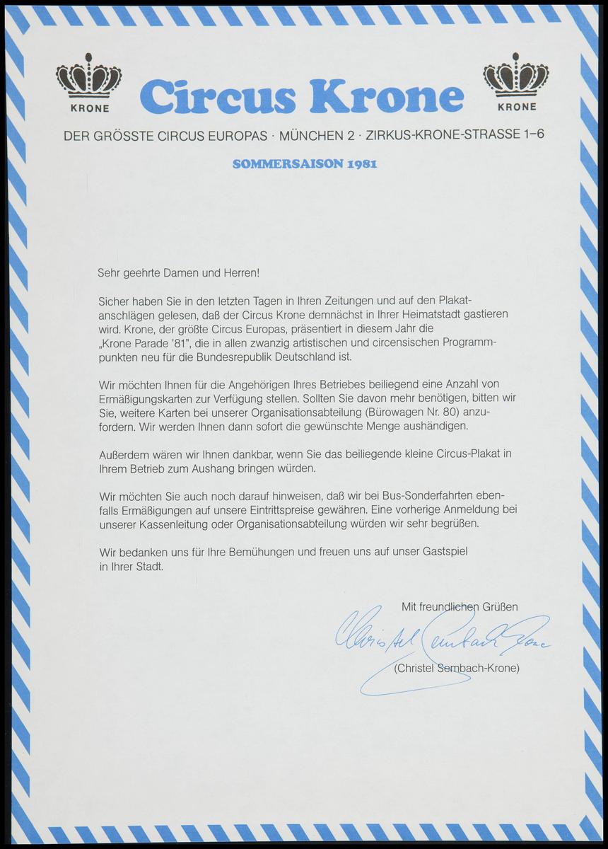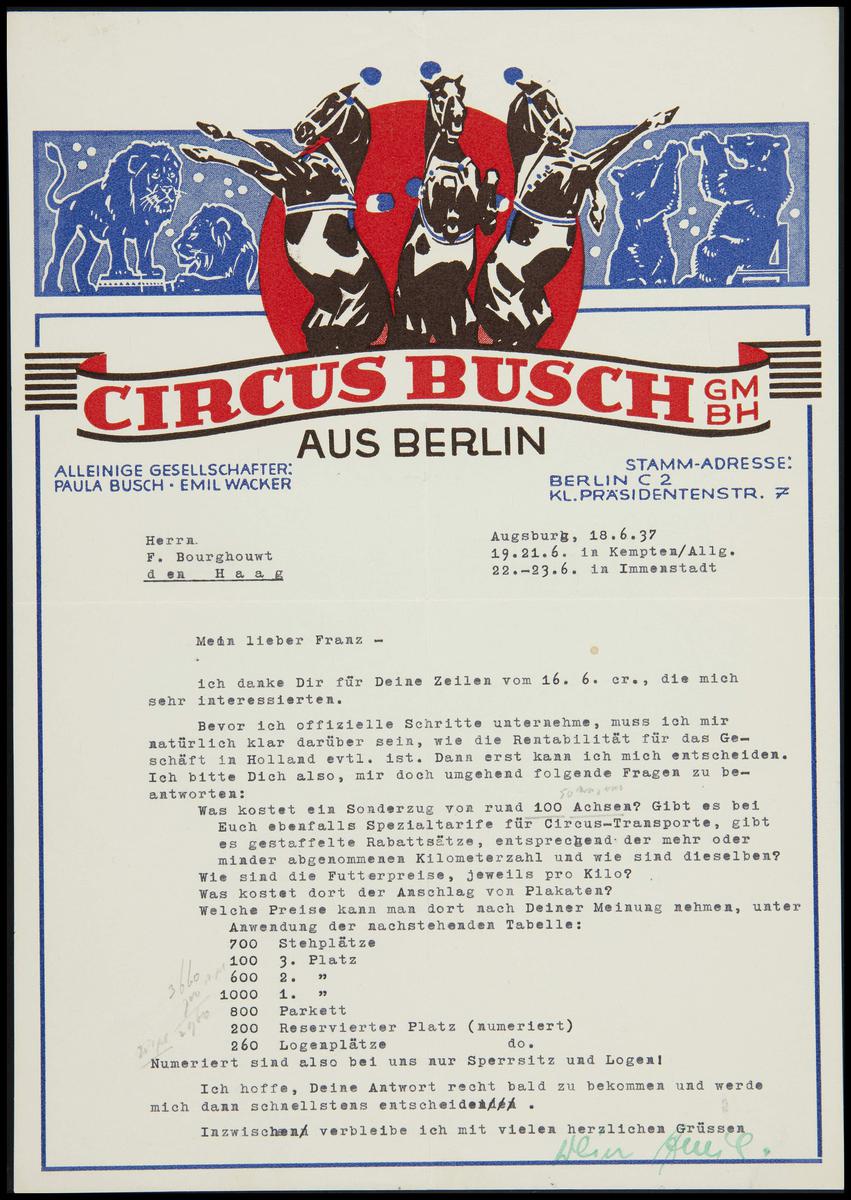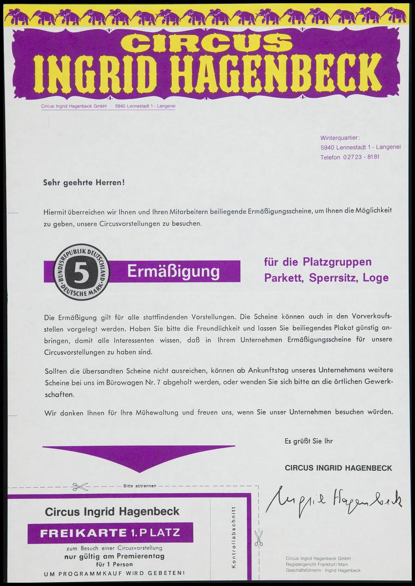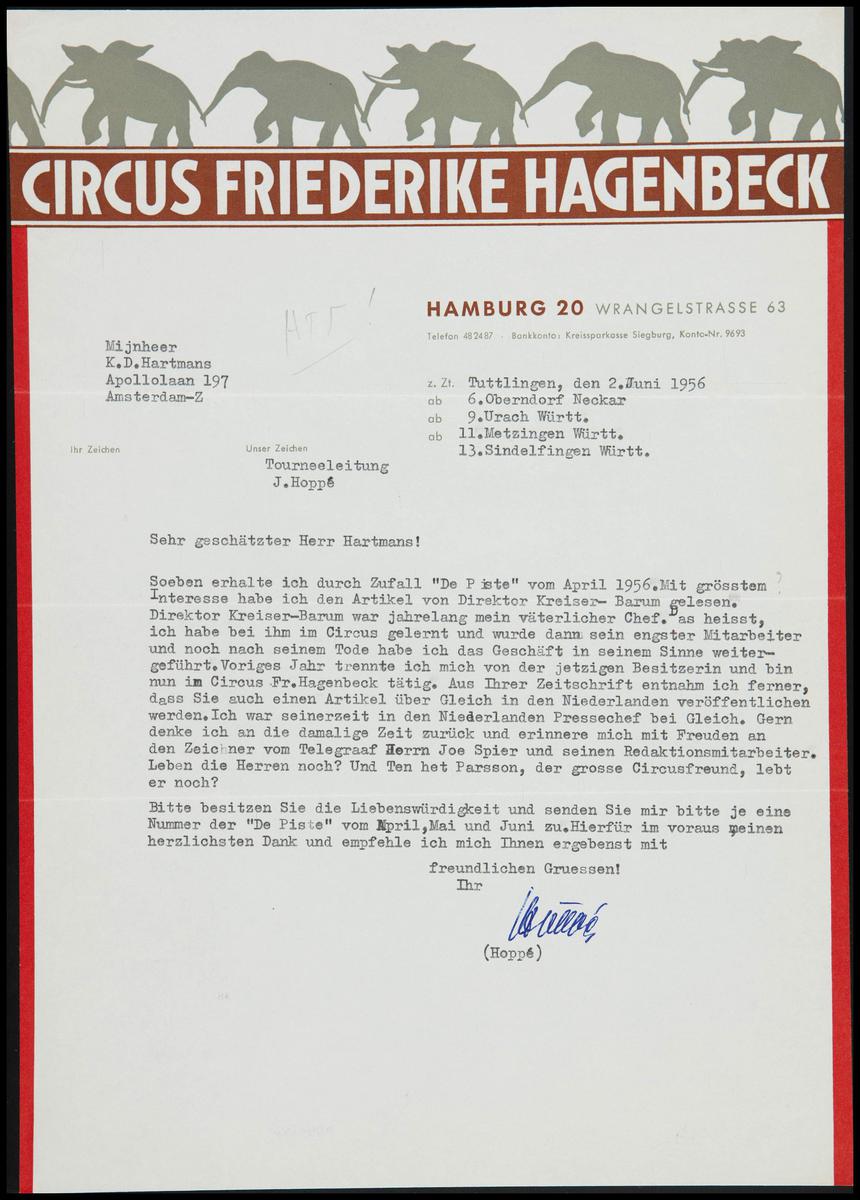 Promotiebrief Circus Willy Hagenbeck (Hoppe)