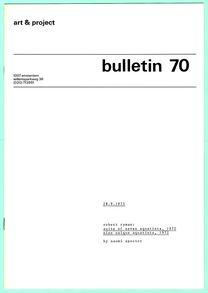 Robert Ryman: Suite of seven aquatints, 1972 : nine ...