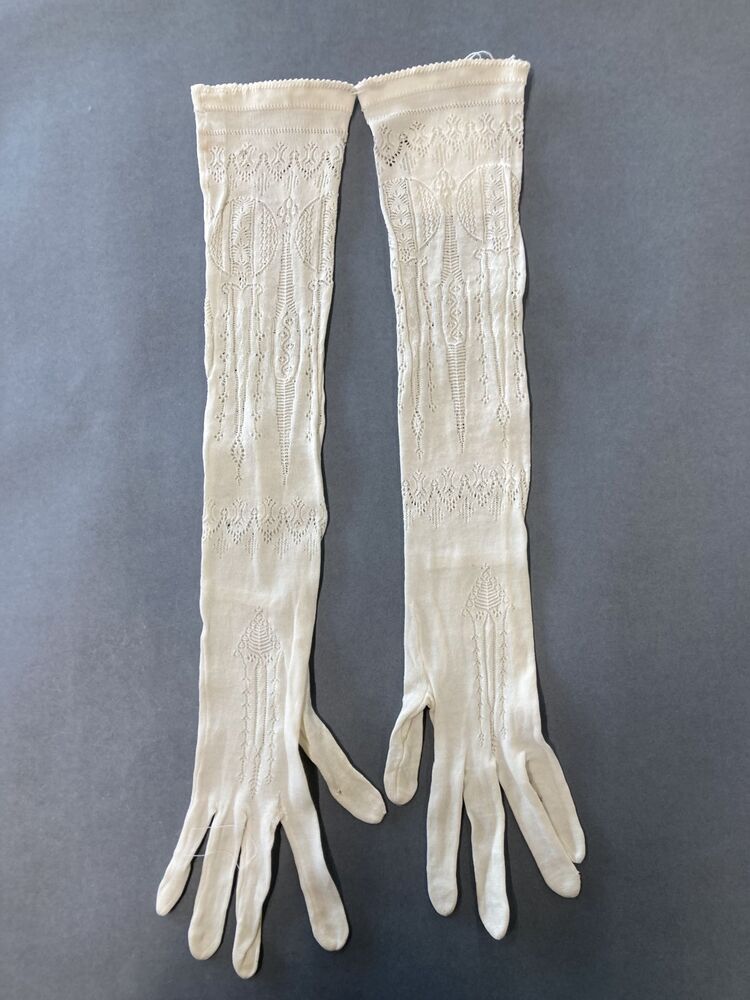 Paar kleine witte dameshandschoentjes van ajourbreisel