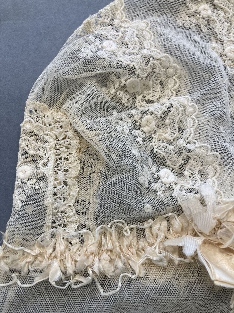 Paar beige ondermouwen van gebrocheerd ajour neteldo...