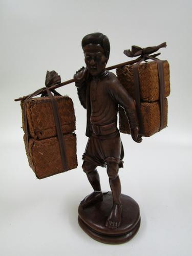 Houten beeld van een theemandendrager.