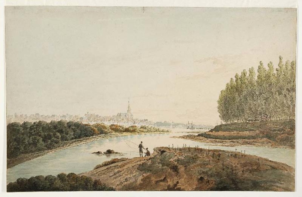 Gezicht op Nijmegen vanaf de Bemmelse dijk