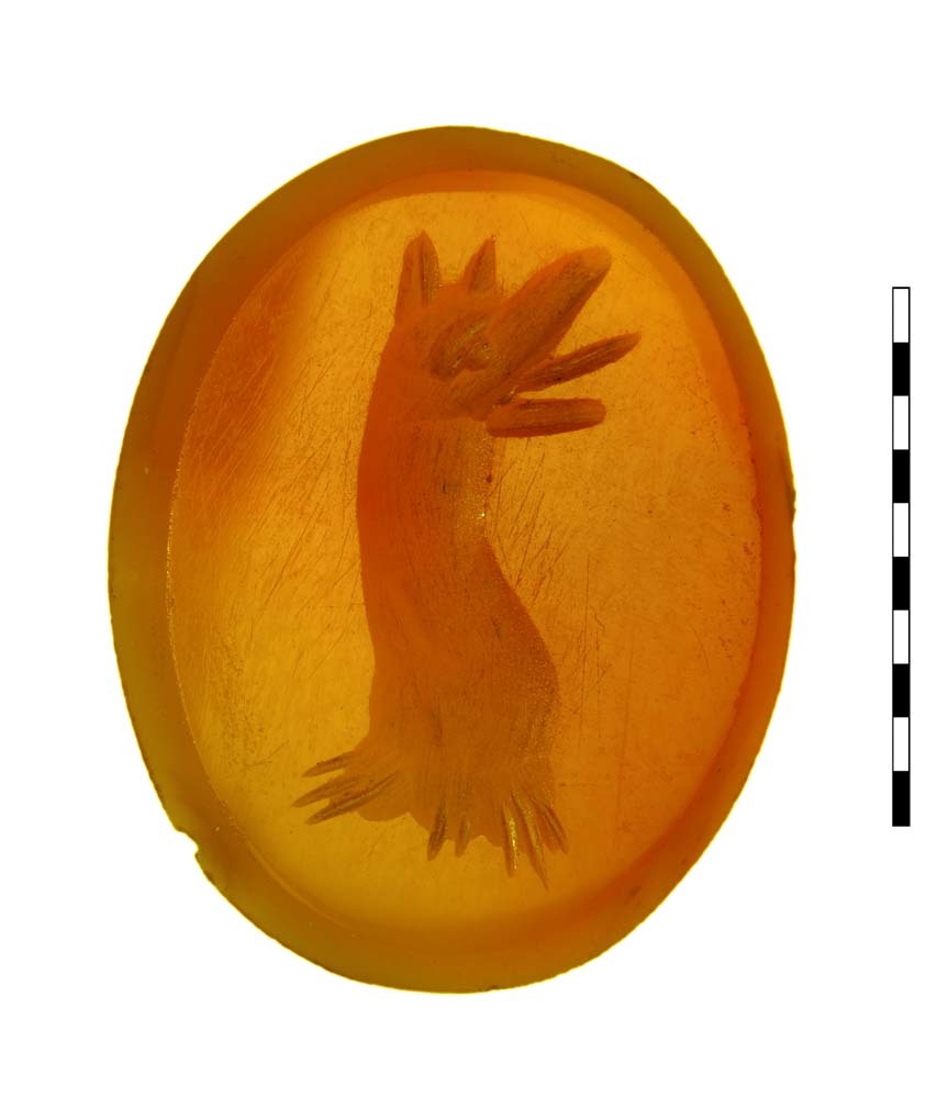 Bodemfragment van een bord van aardewerk uit de Rome...