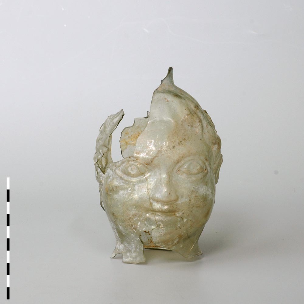 Fles van glas met antropomorfe vorm uit de Romeinse ...