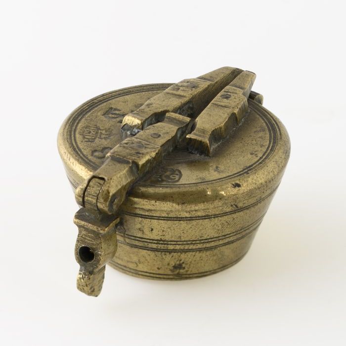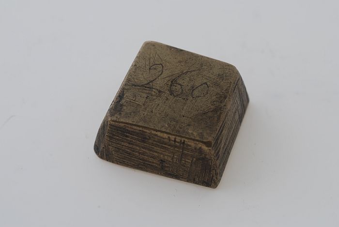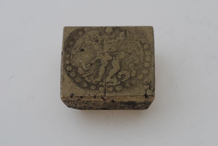 Vierkant muntgewicht, blokbeeldenaar kruis met platt...