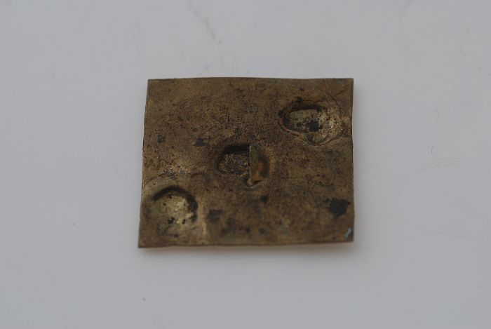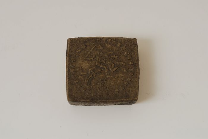 Vierkant muntgewichtje, grein met drie instempelingen
