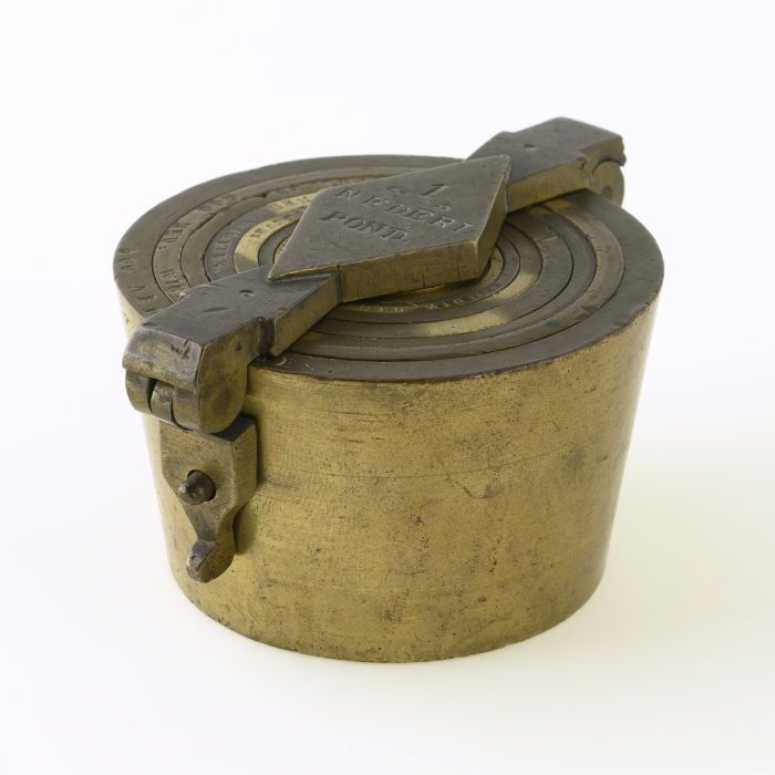 Sluit- of pijlgewicht van vijf nederlandse oncen, zo...