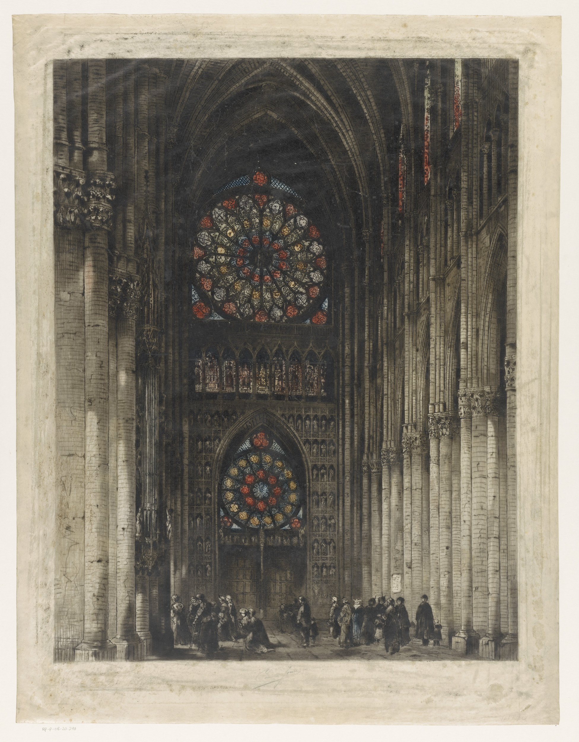Gezicht op de roosvensters van de Kathedraal van Reims