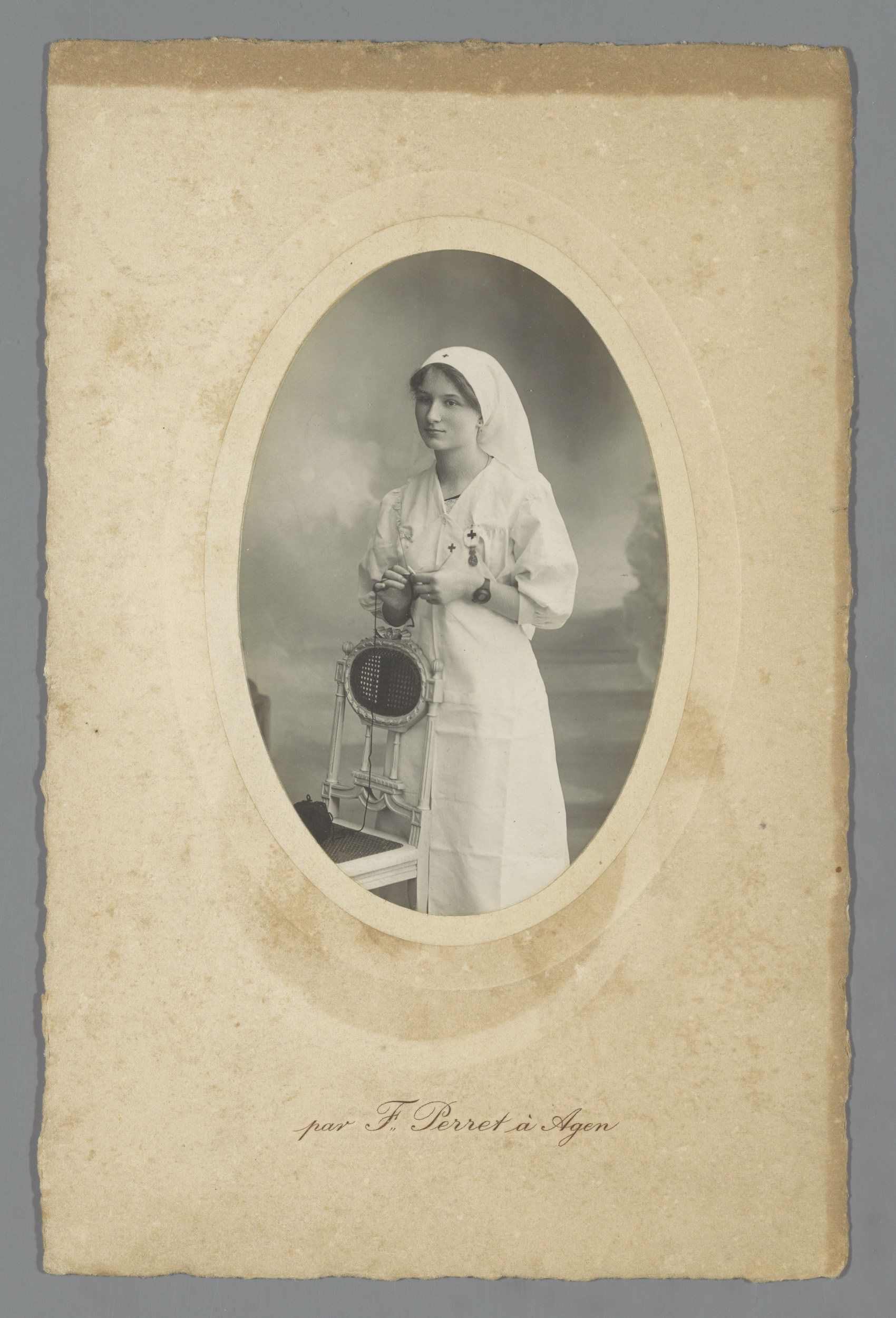 Portret van Nanou in verpleegstersuniform van het Ro...