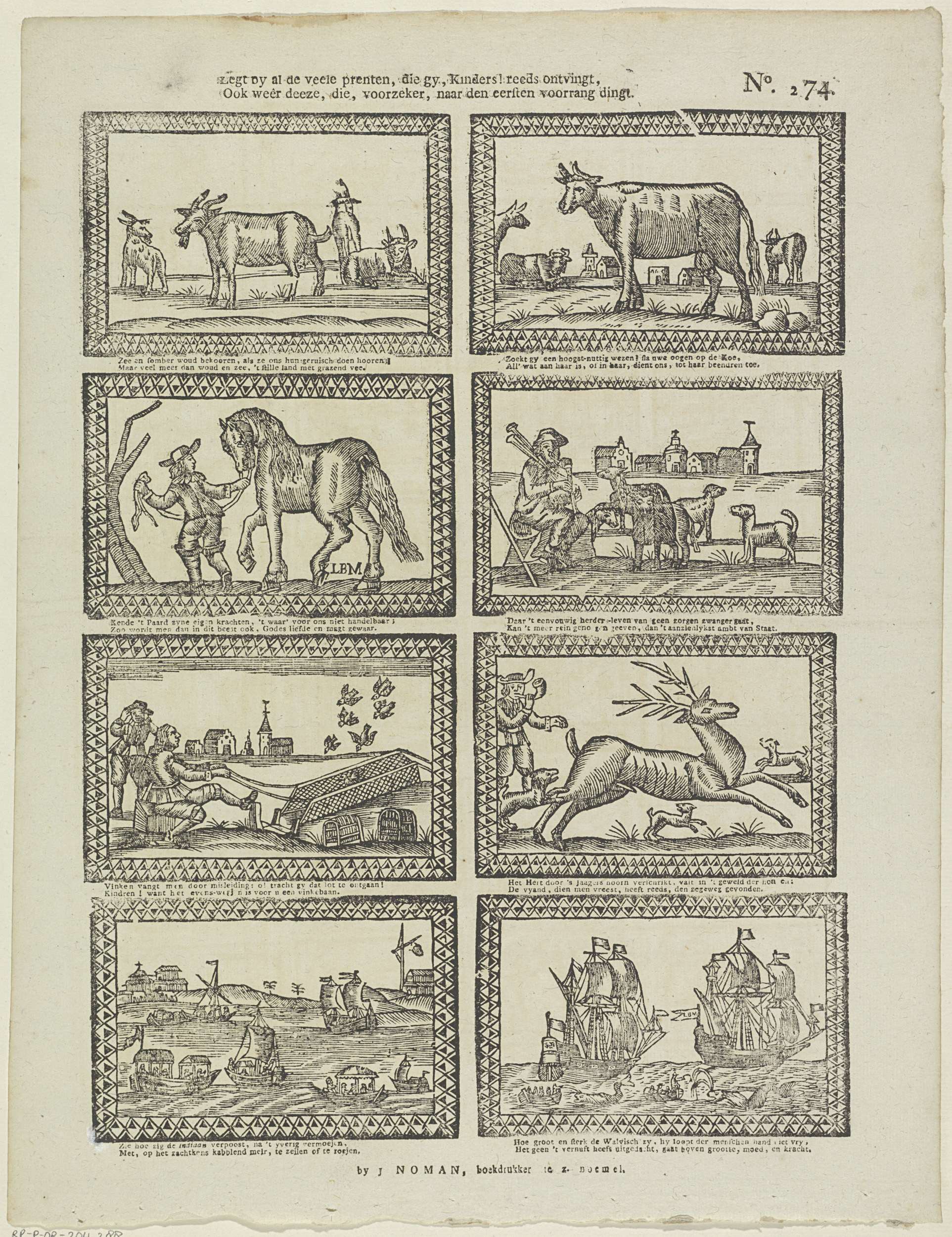Eenige dieren u bekend, / Ziet gy ook op deze prent;...