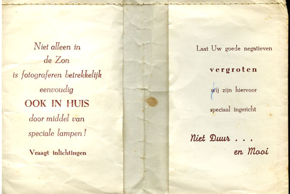 Enveloppe 'Foto Bouchier Zevenaar' voorgedrukt papie...