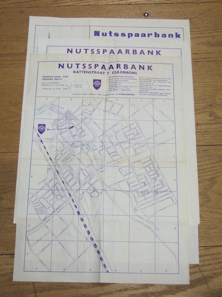plattegrond van Culemborg in blauwe inkt op papier, ...