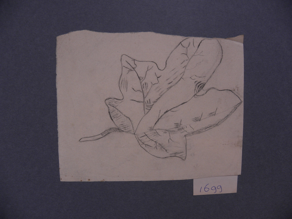 Tekening gemaakt met potlood, voorstellende een blad...