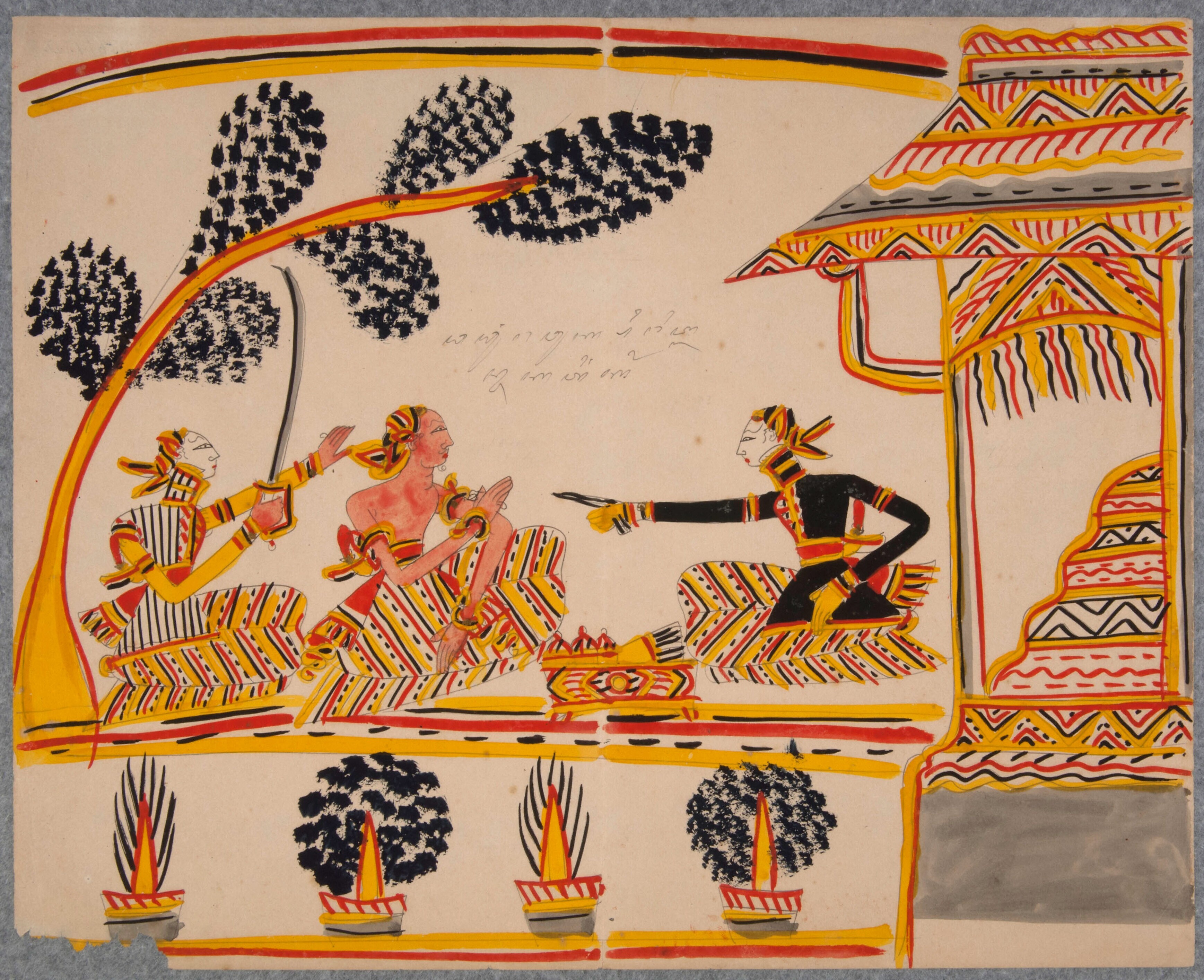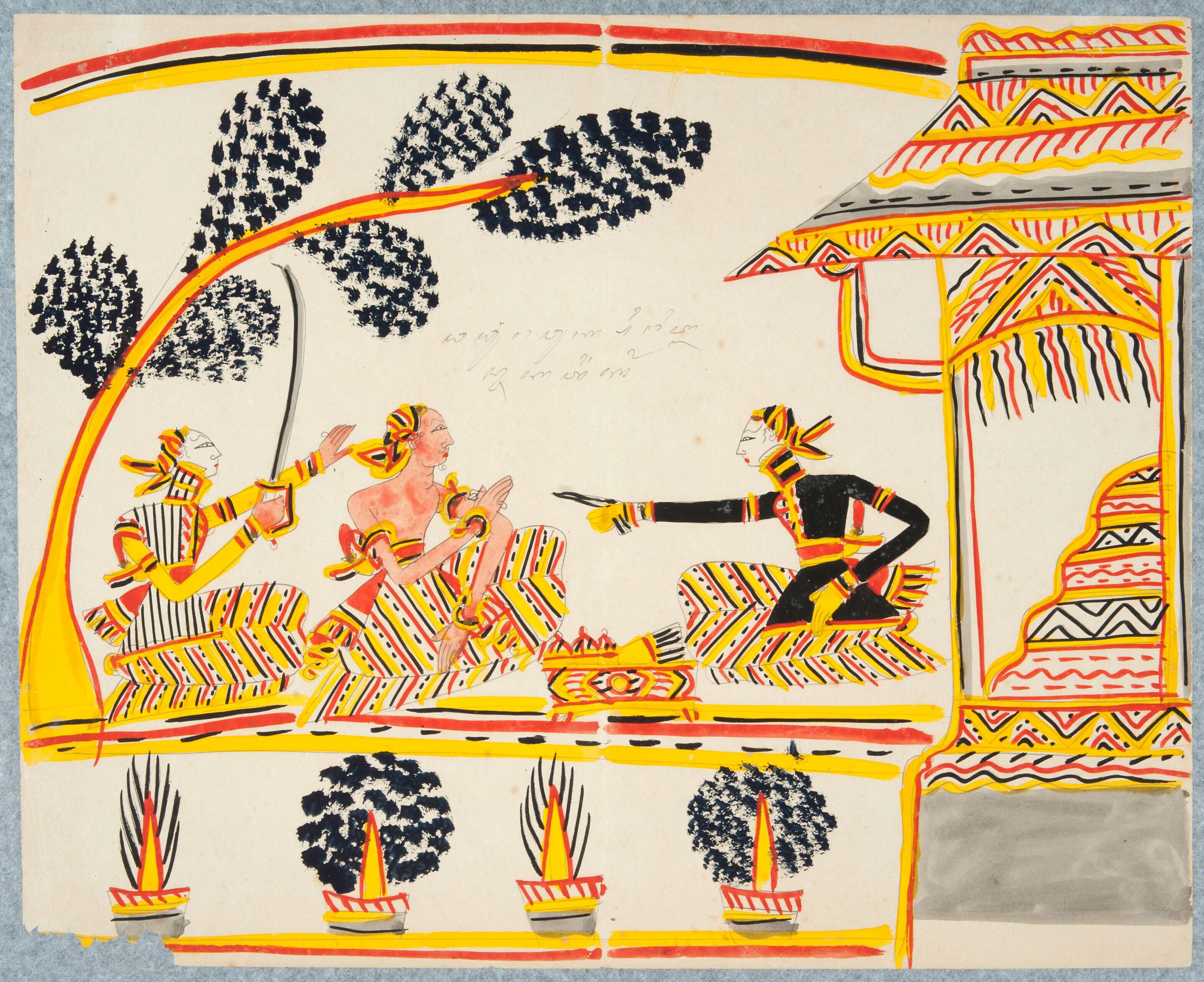 Scene uit een modern wajangverhaal over de jongen Ta...