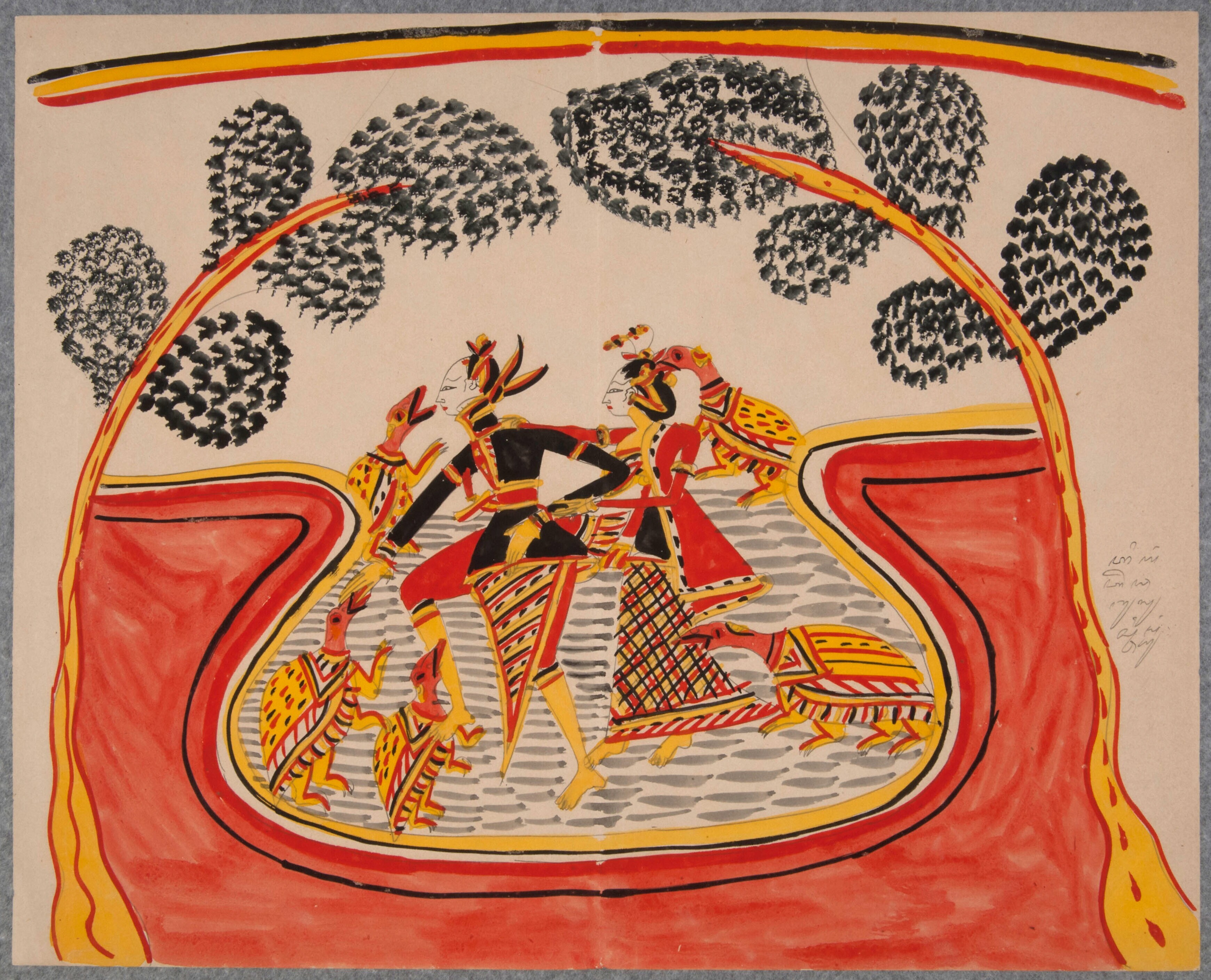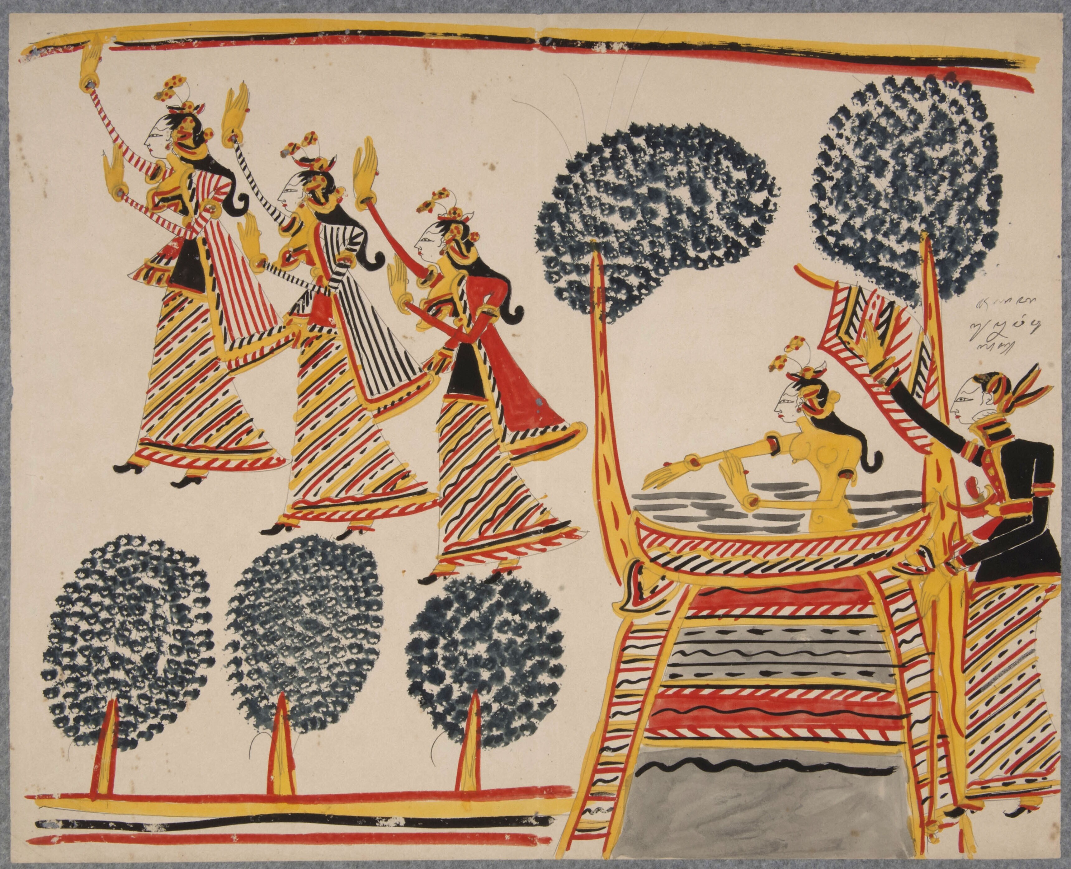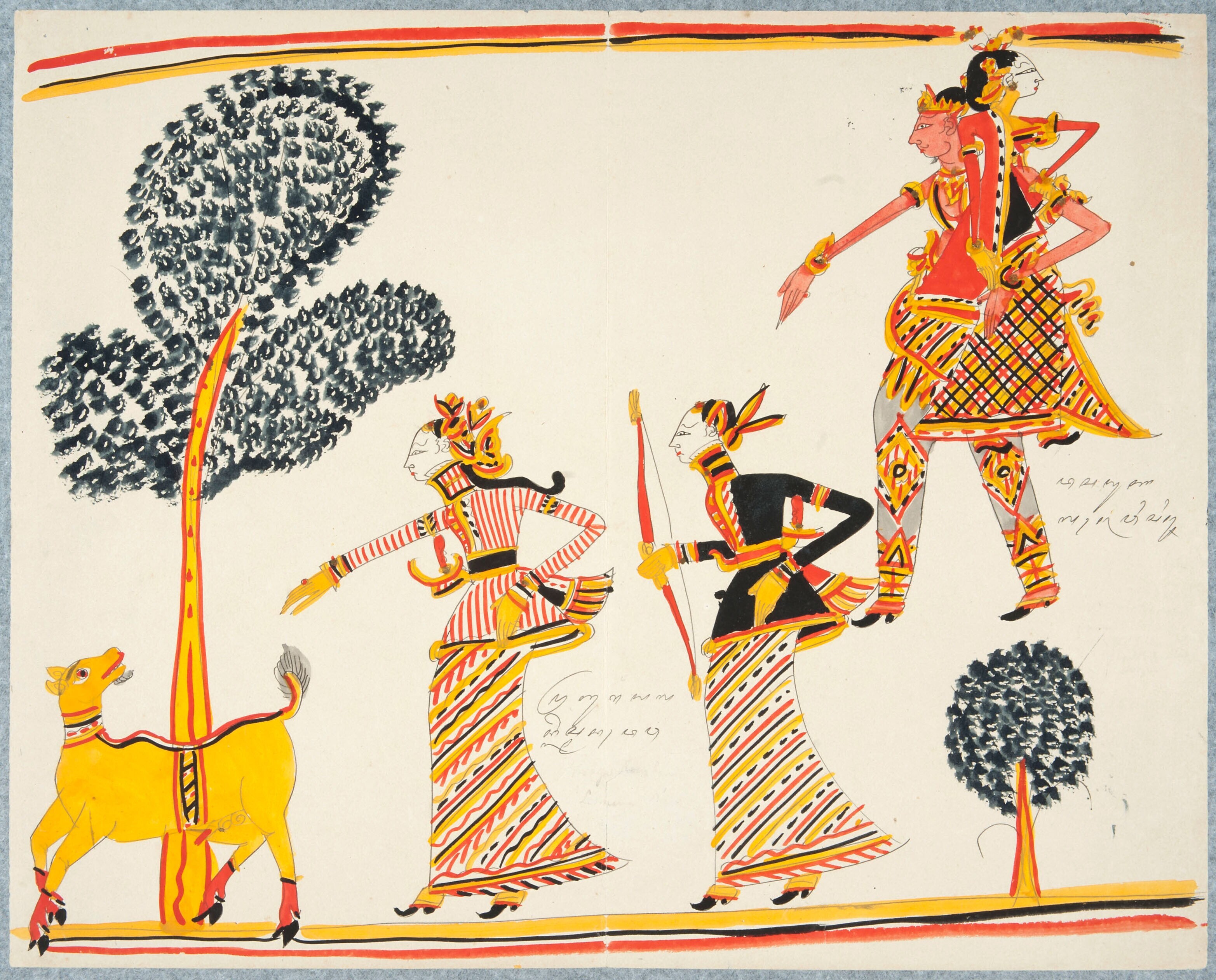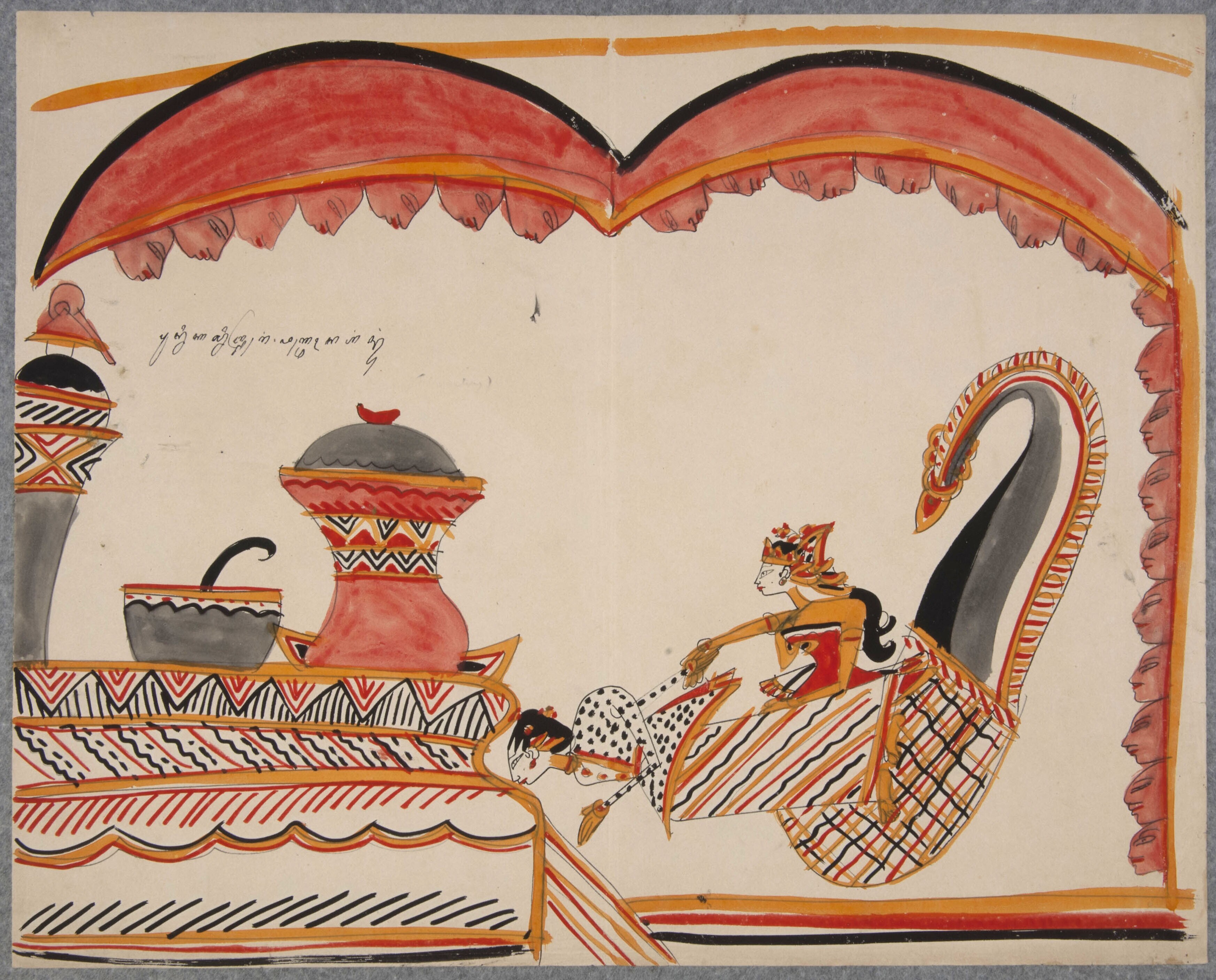 De vrouwelijke figuren Suwara en Si Tulpang die elka...