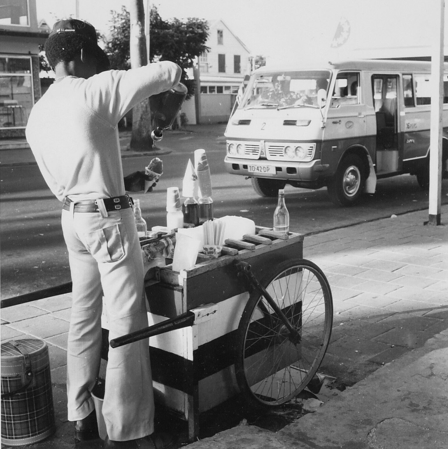 Een van de vele schaafijsverkopers van de stad.In ee...