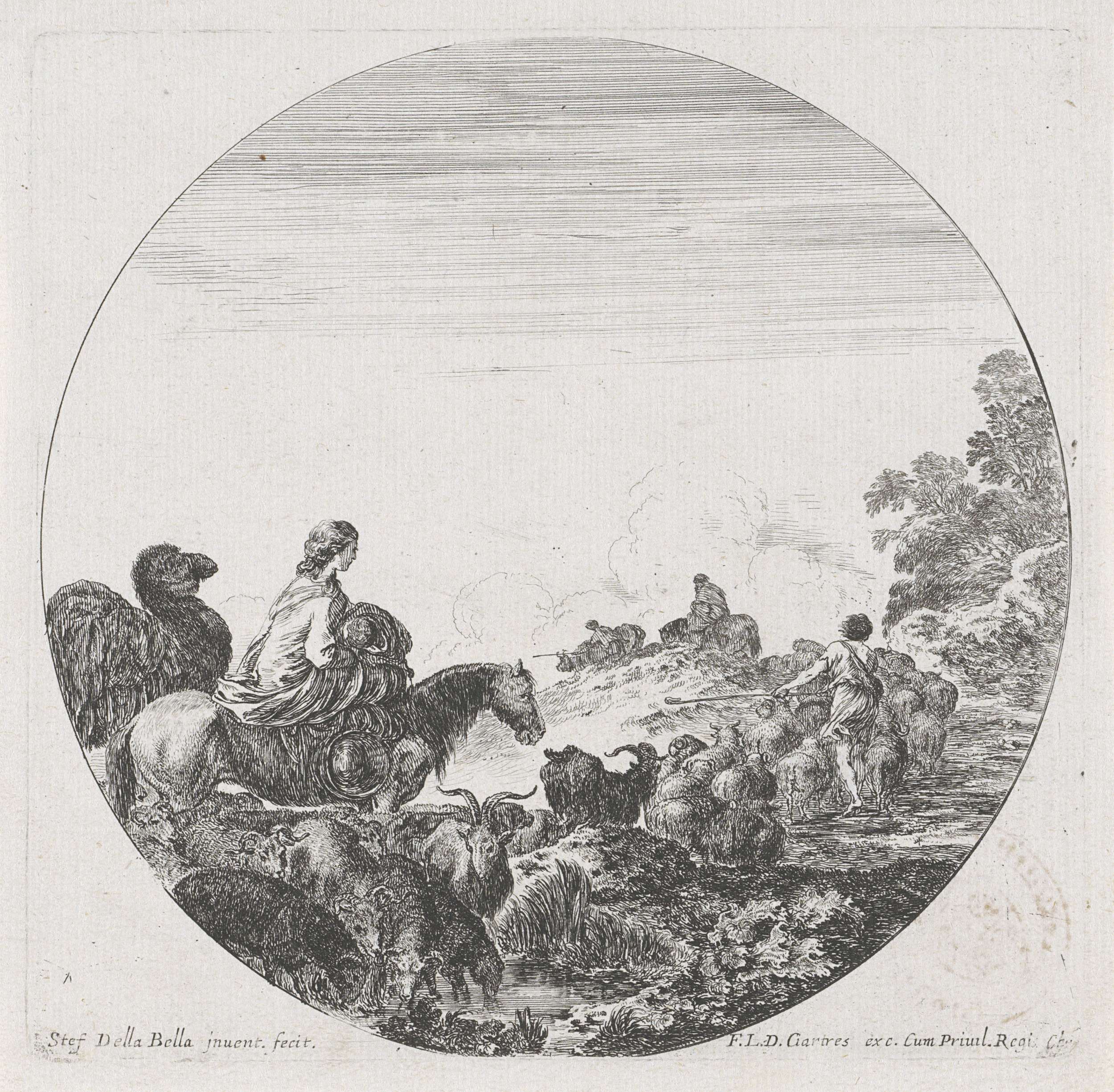 Twee herders met kudde in een landschap