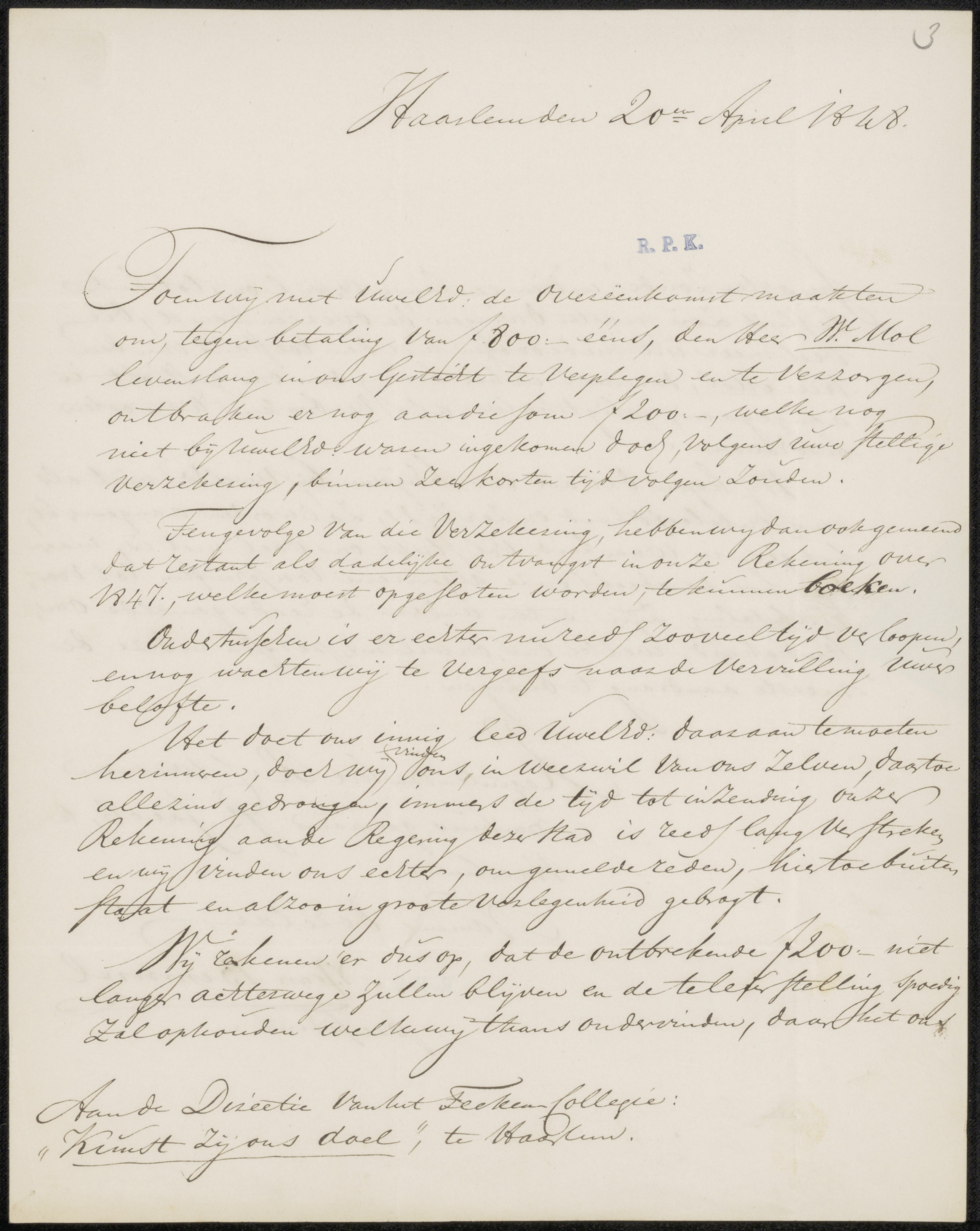 Brief aan Pieter Haverkorn van Rijsewijk