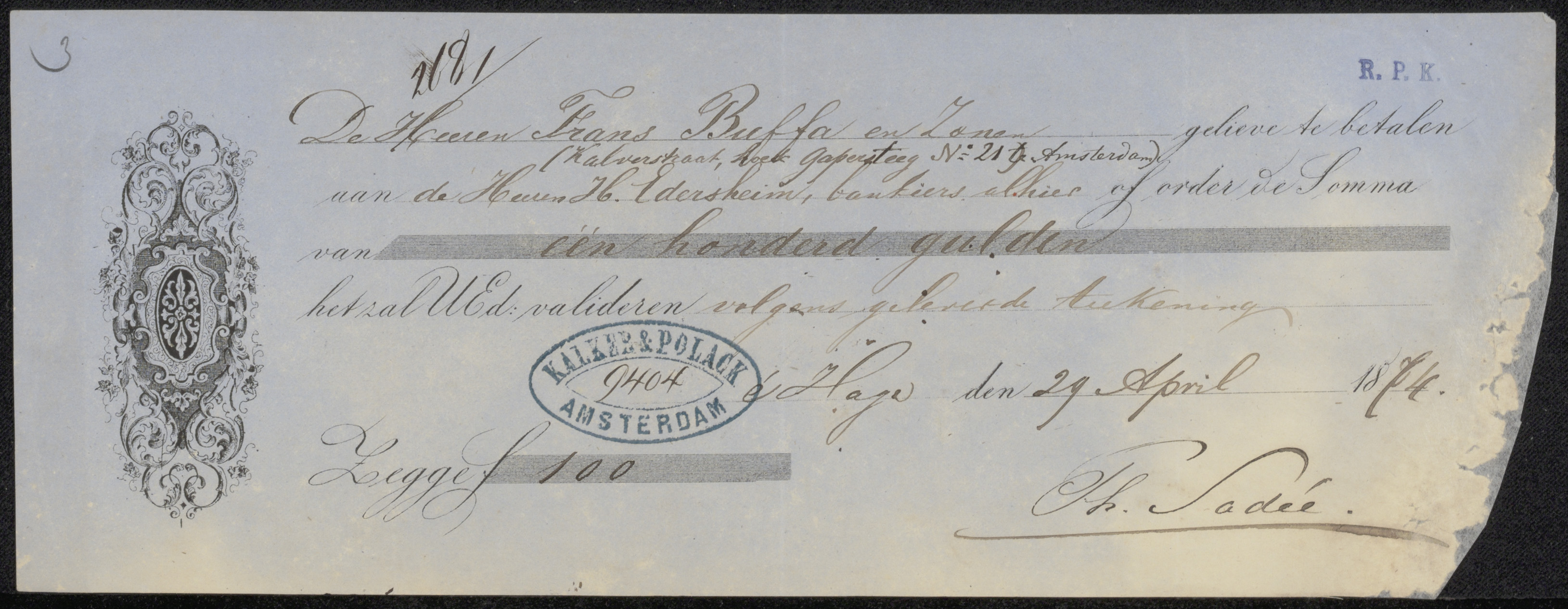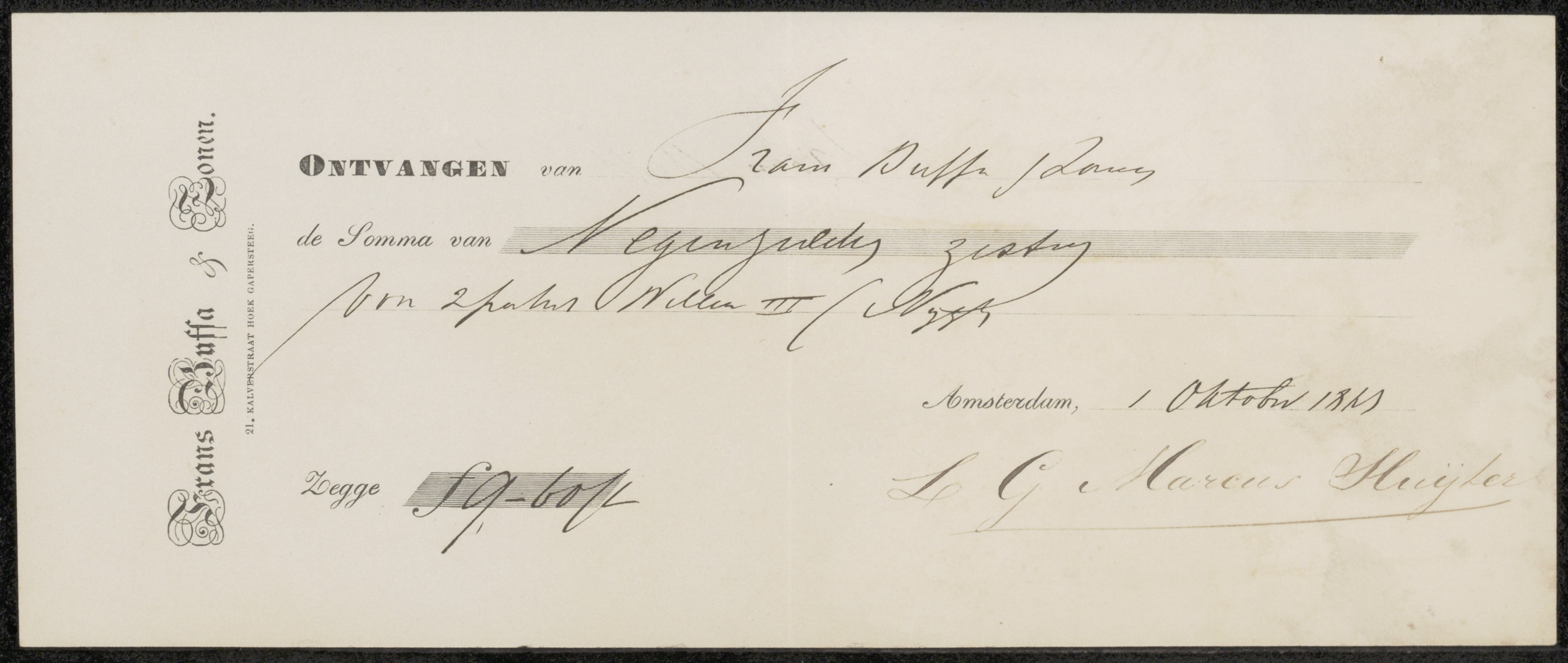 Kwitantie voor Frans Buffa en Zonen