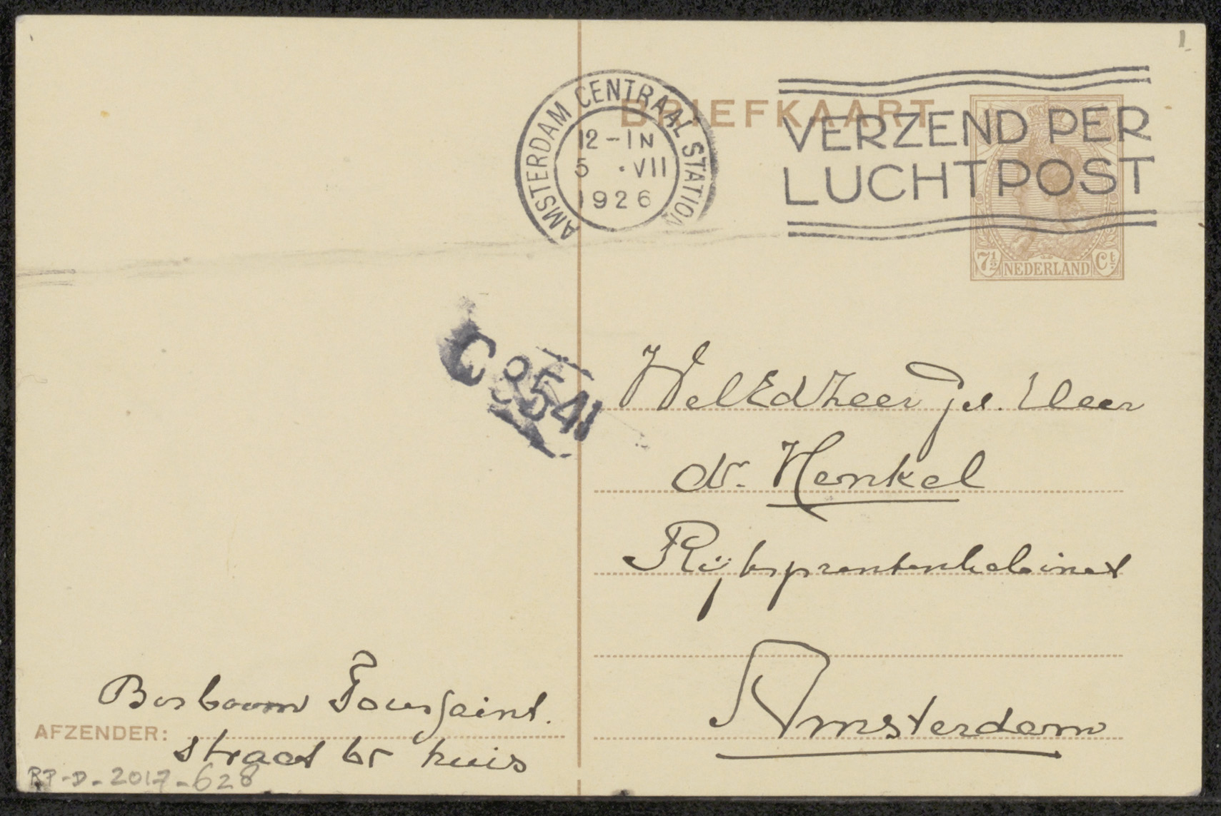 Briefkaart aan Max Dittmar Henkel