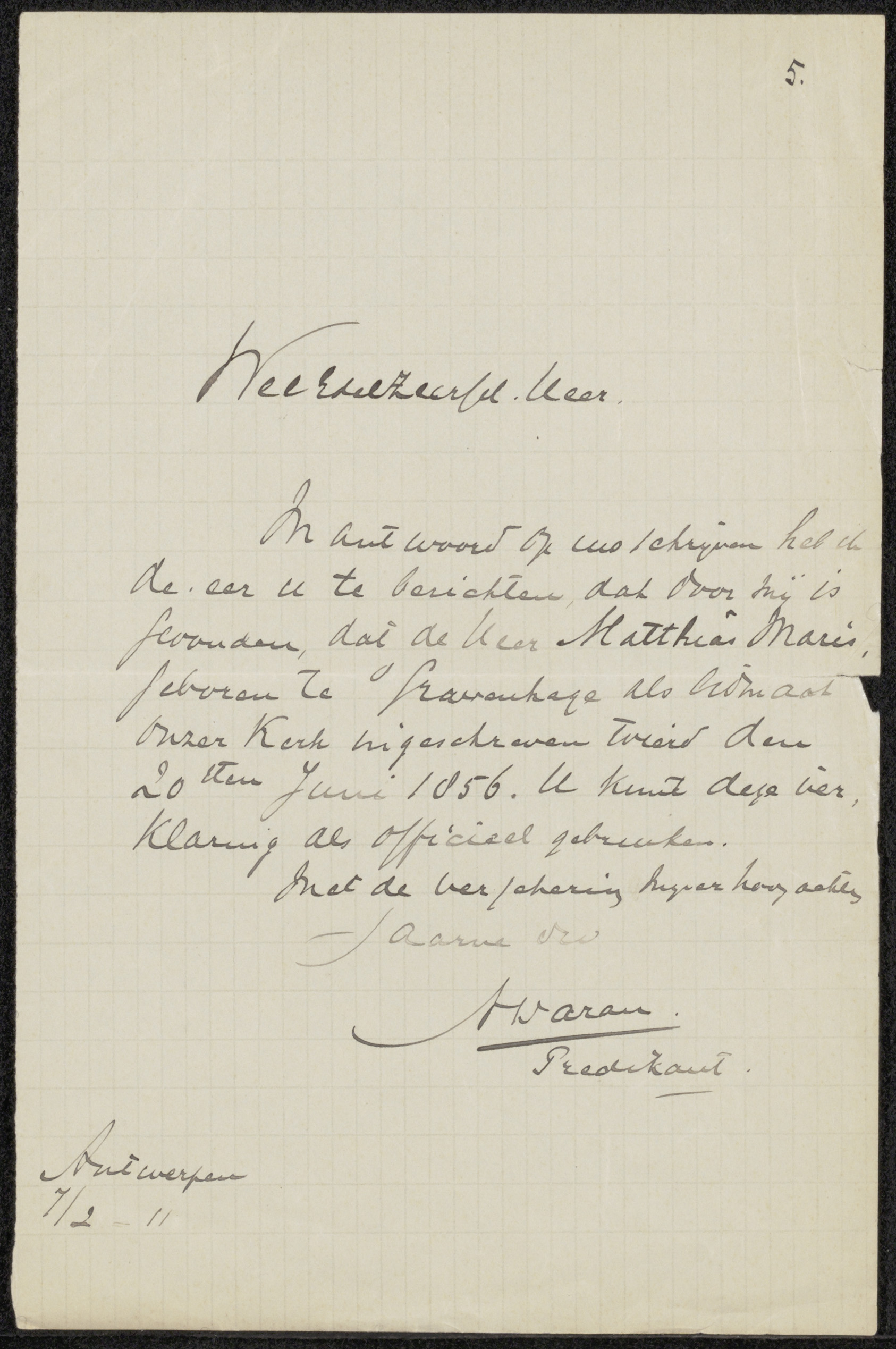 Brief aan Johannes Jacobus Franciscus Wap
