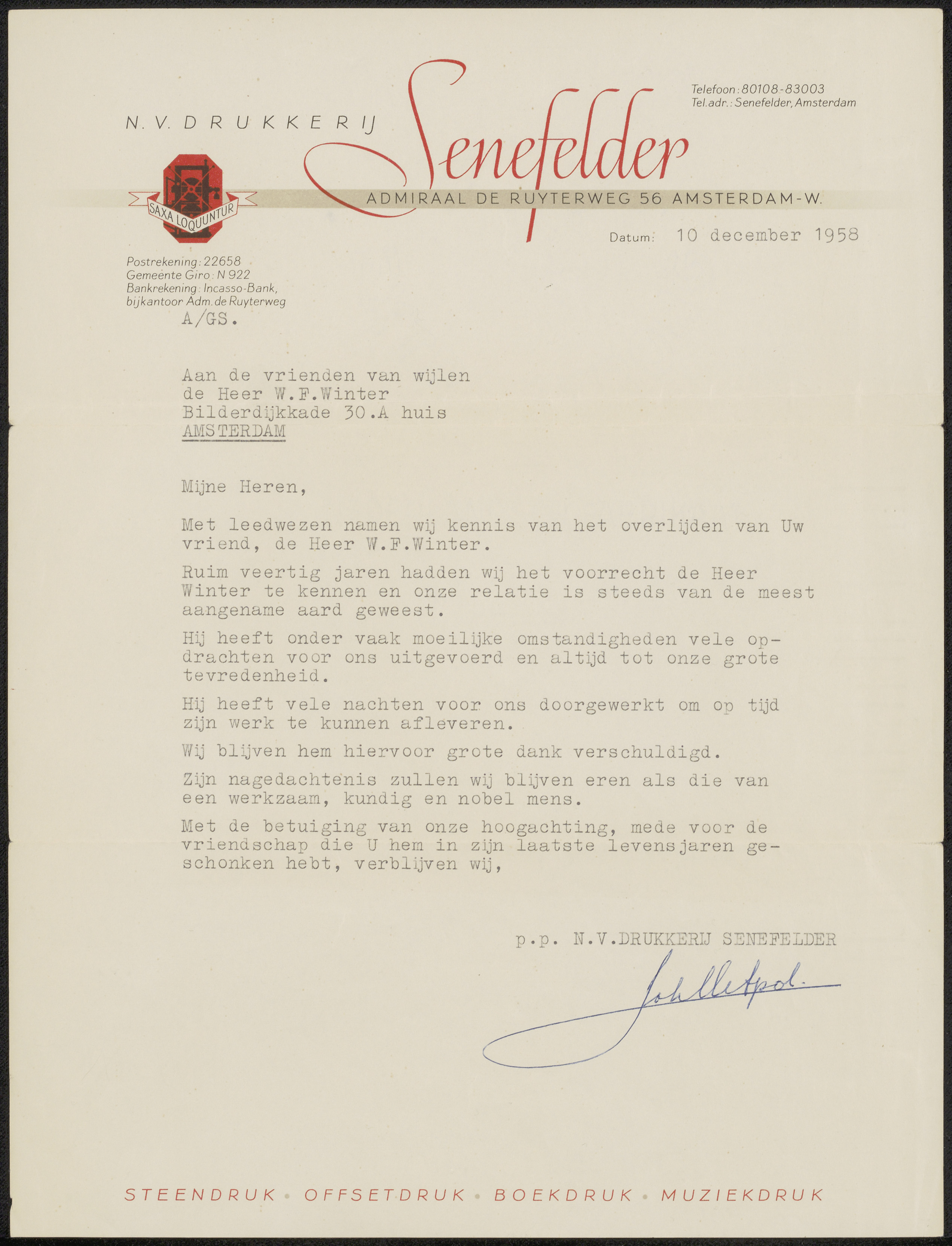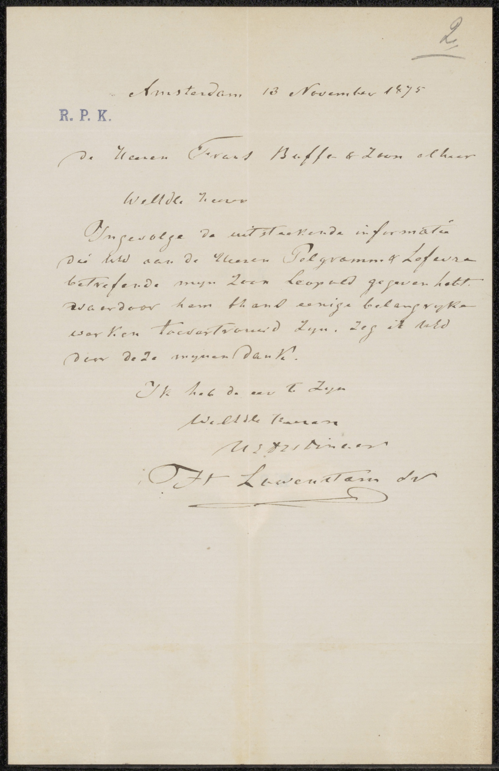 Brief aan Frans Buffa en Zonen