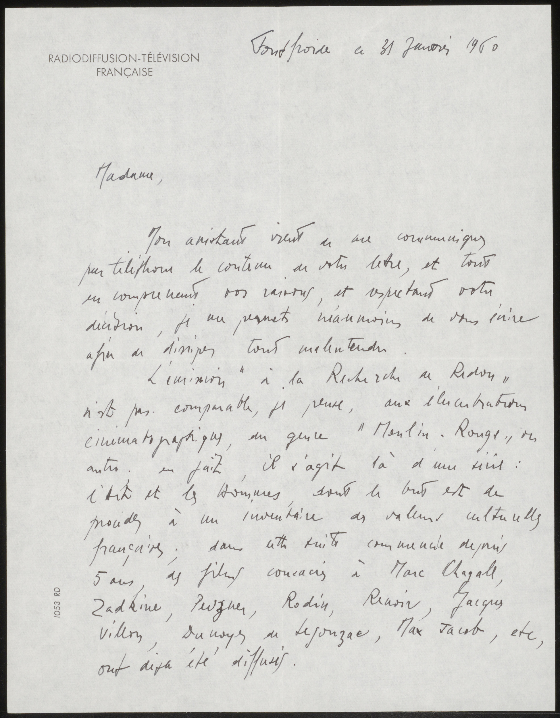Brief aan de Koninklijke Muntschouwburg