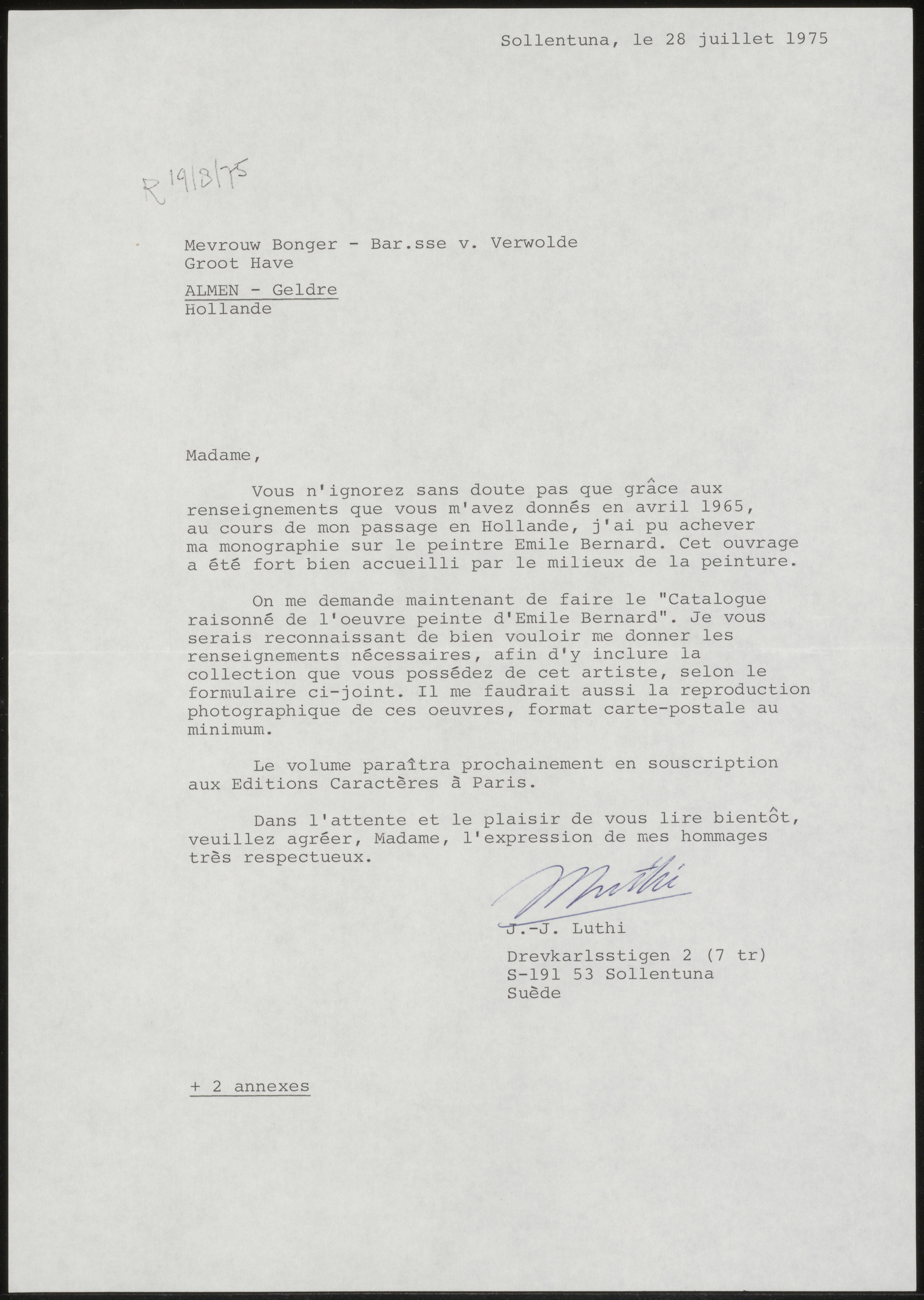 Brief aan Louis Royer