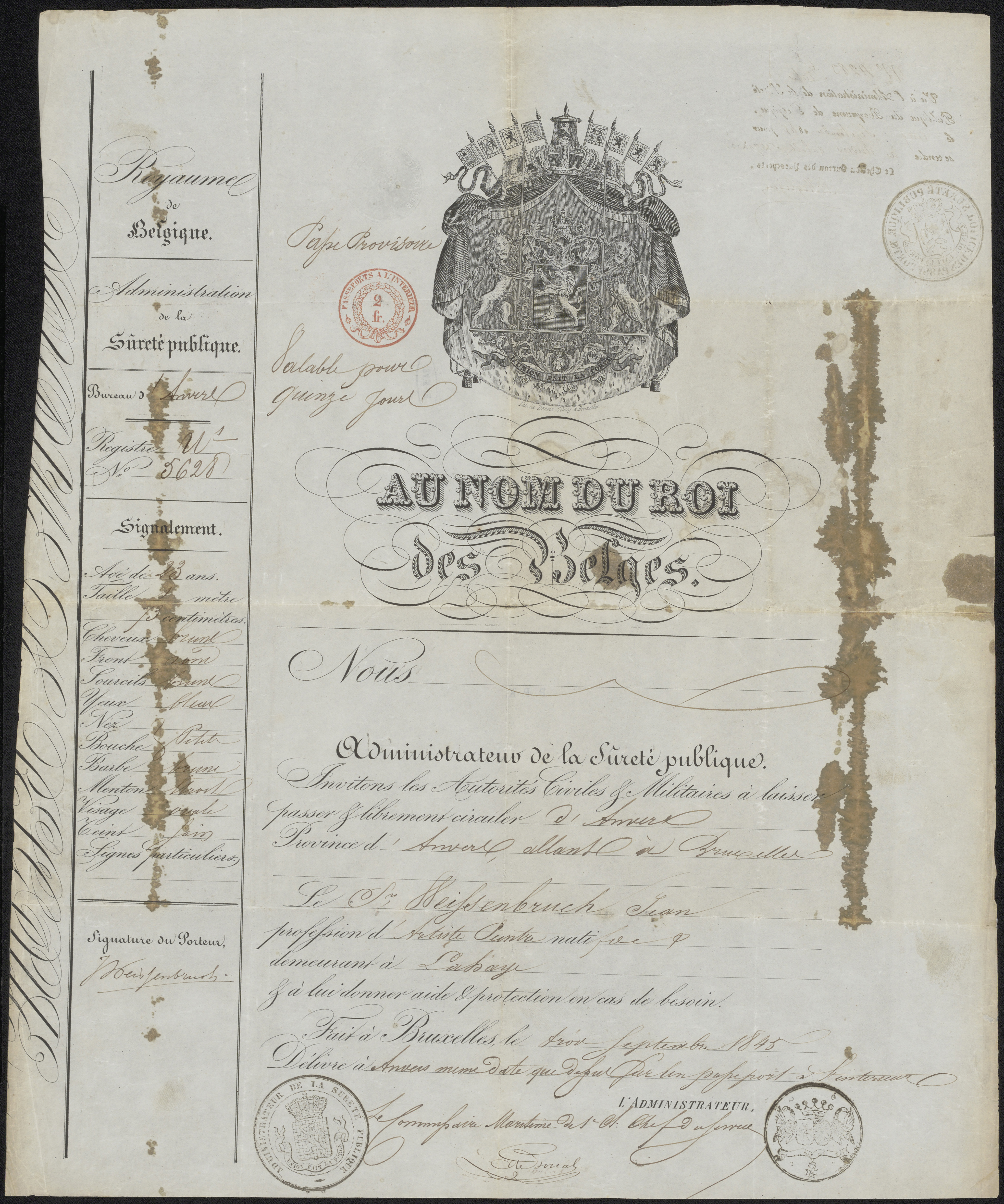 Reisdocument van Jan Weissenbruch