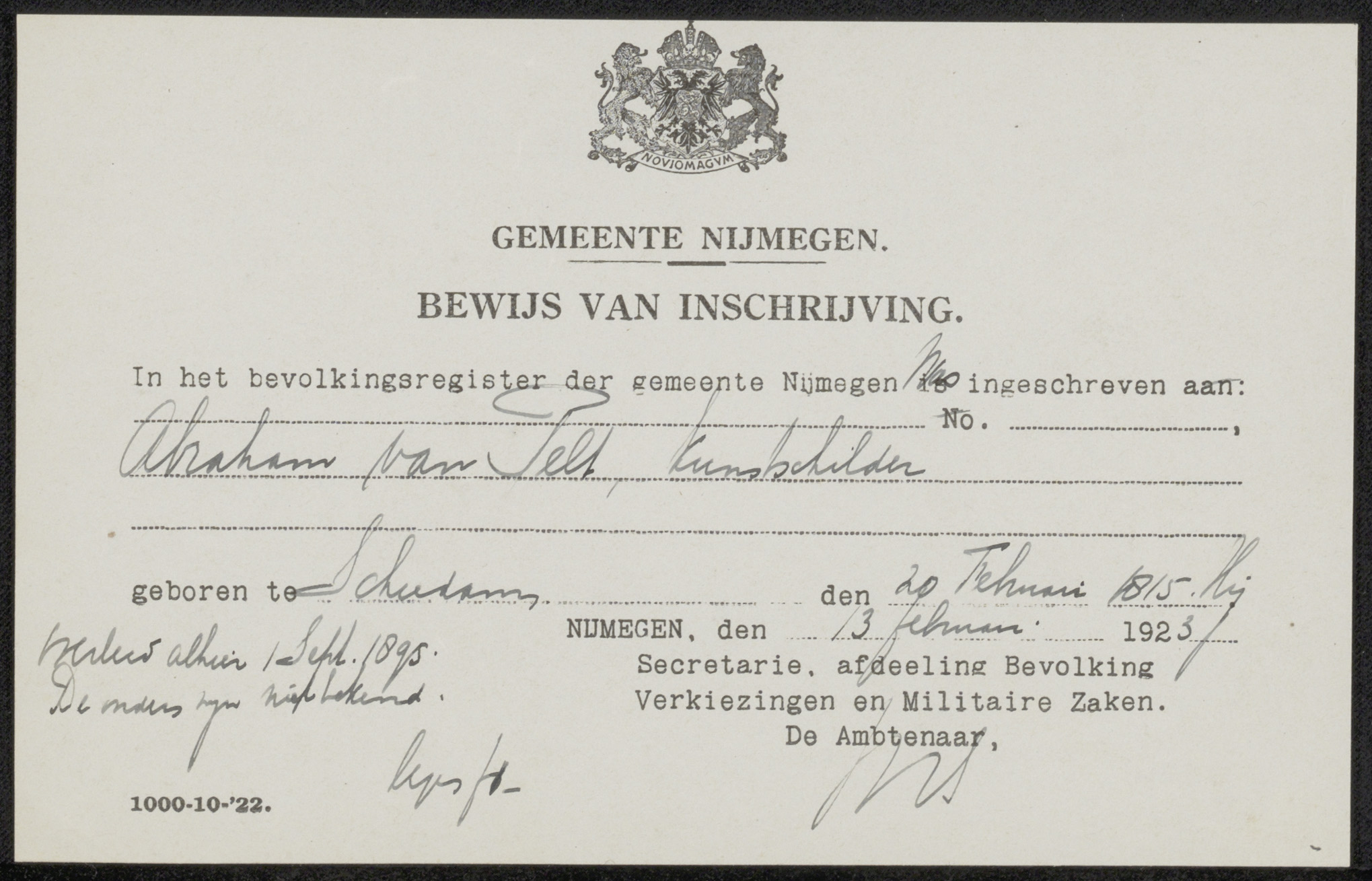 Bewijs van inschrijving in het bevolkingsregister va...
