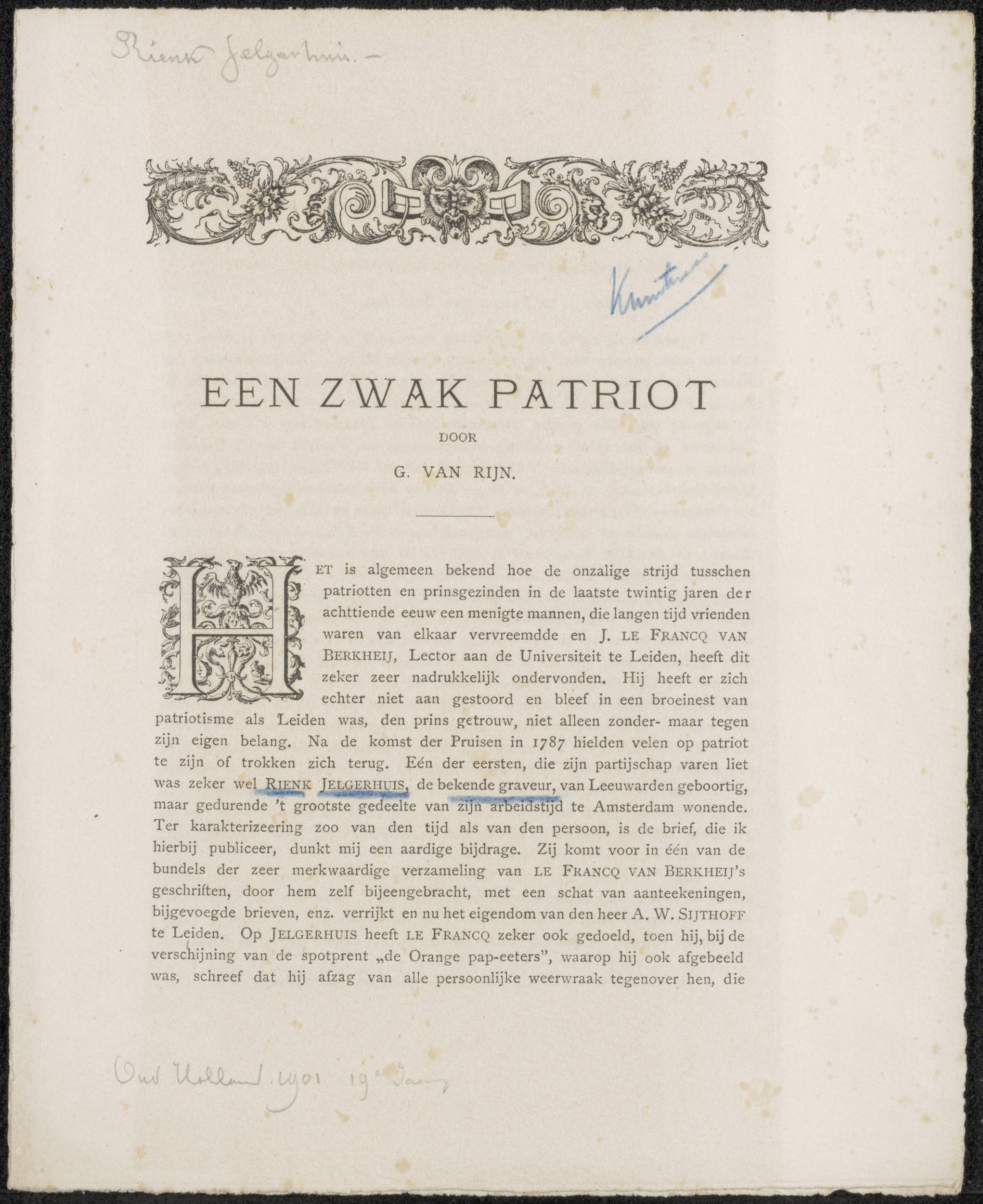 Artikel betreffende Rienk Jelgerhuis