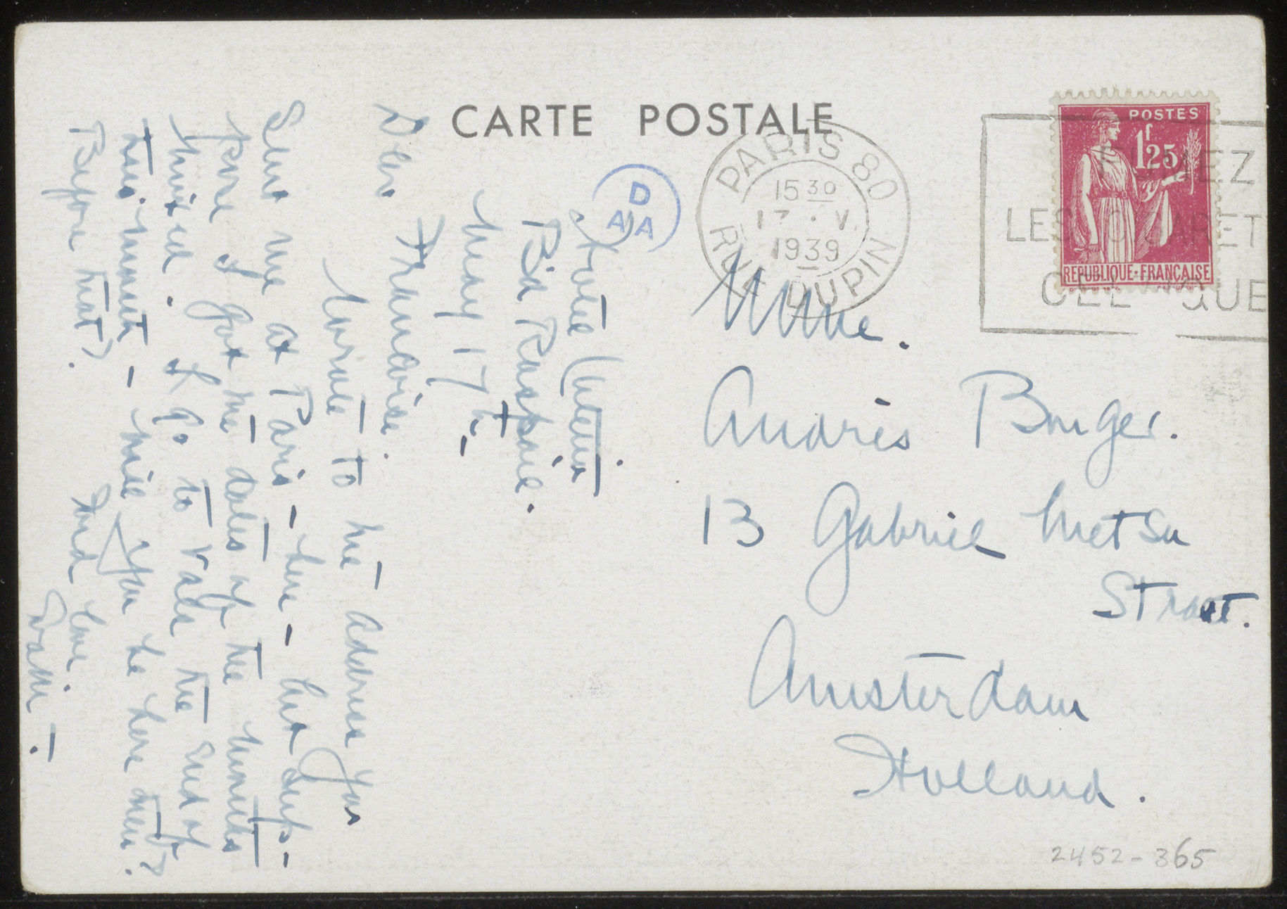 Prentbriefkaart aan Françoise W.M. Bonger