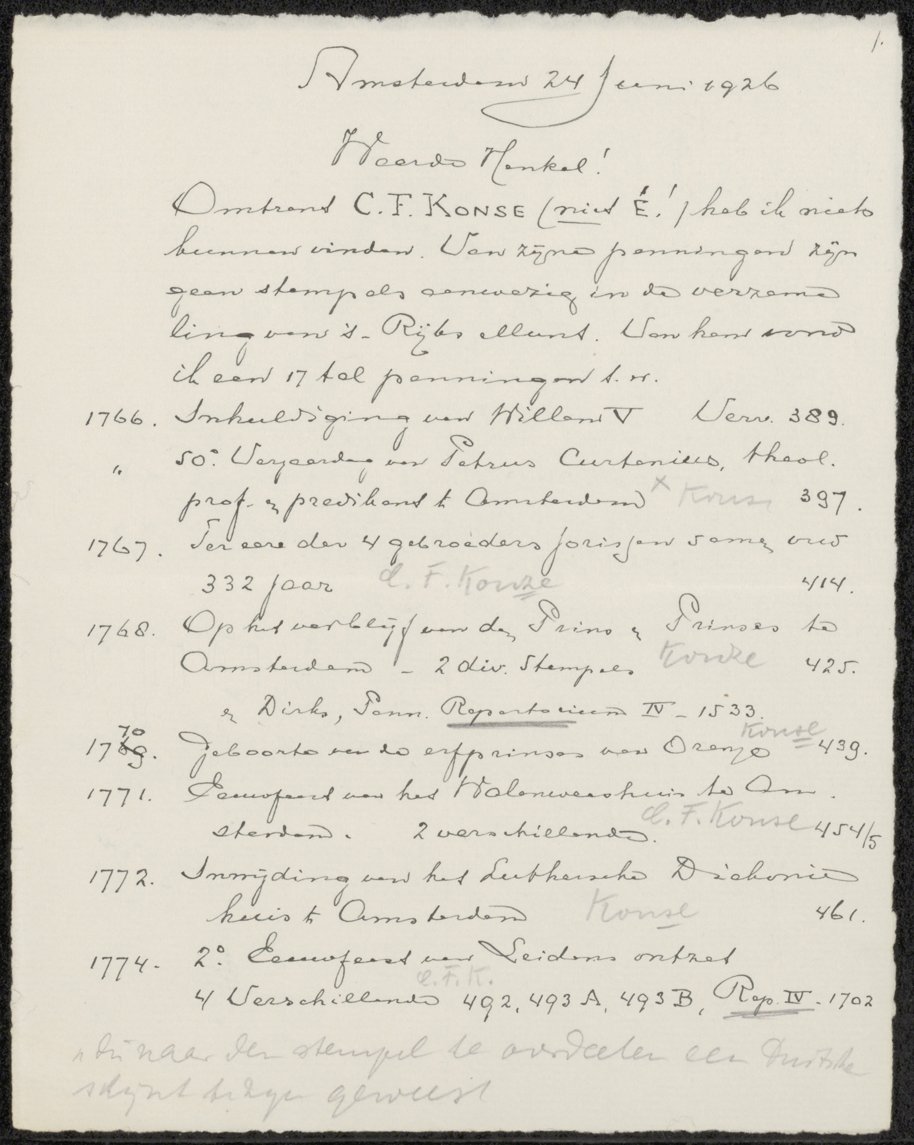 Brief aan Johannes Immerzeel