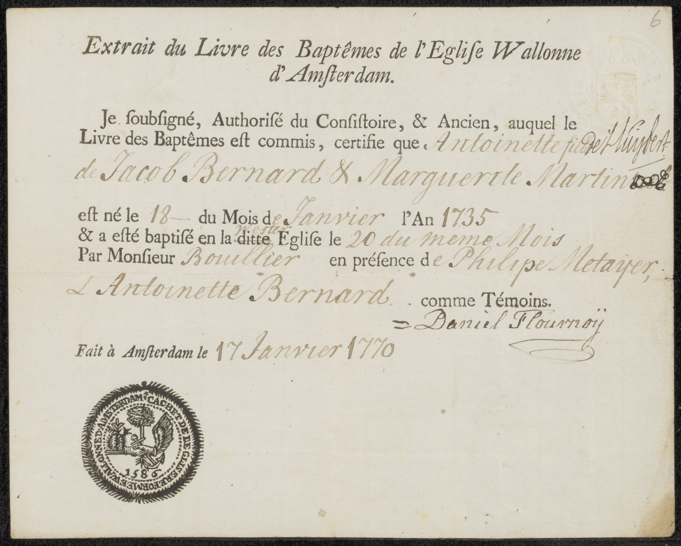 Uittreksel uit doopregister betreffende Antoinette B...