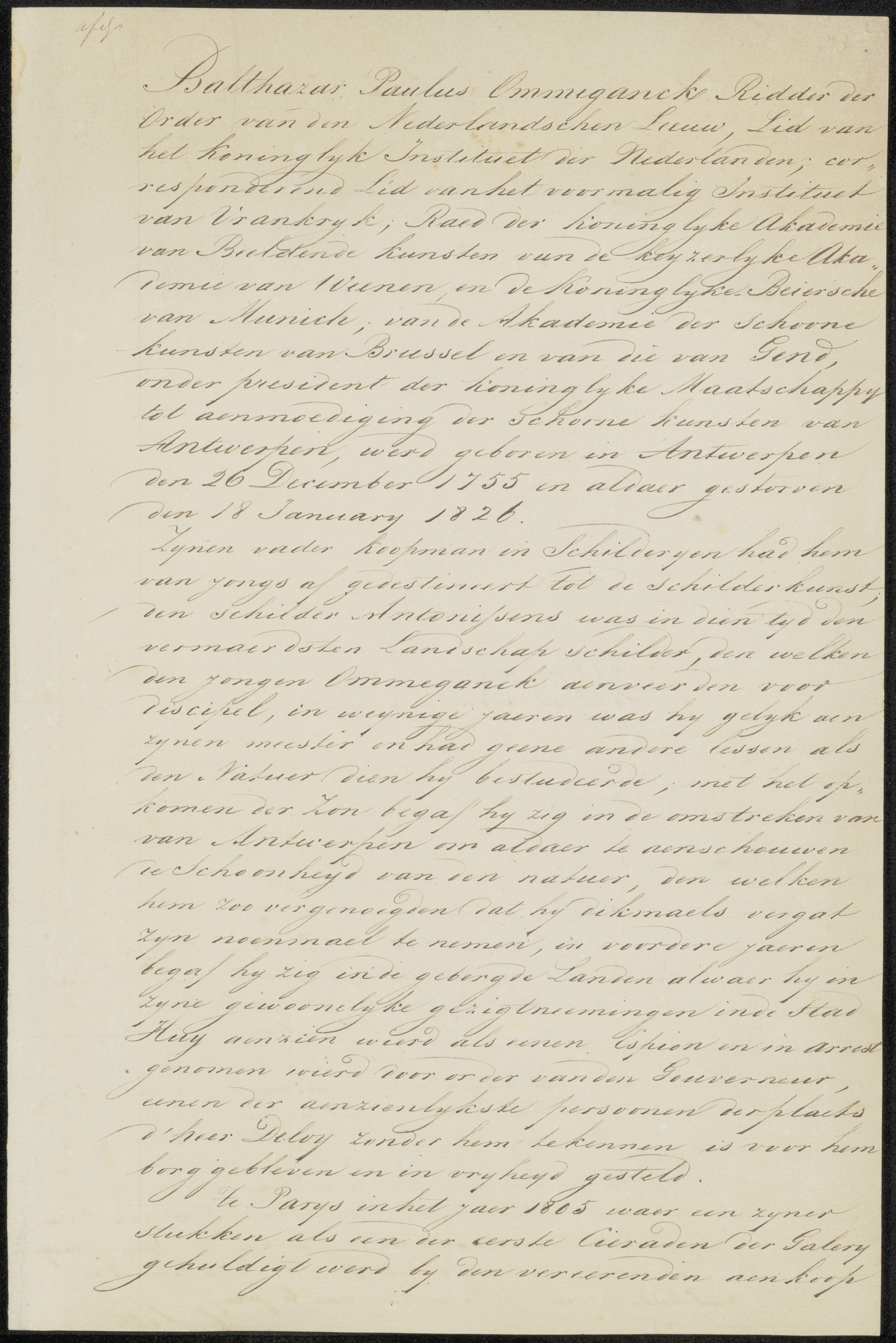 Document betreffende Balthasar Paul Ommeganck