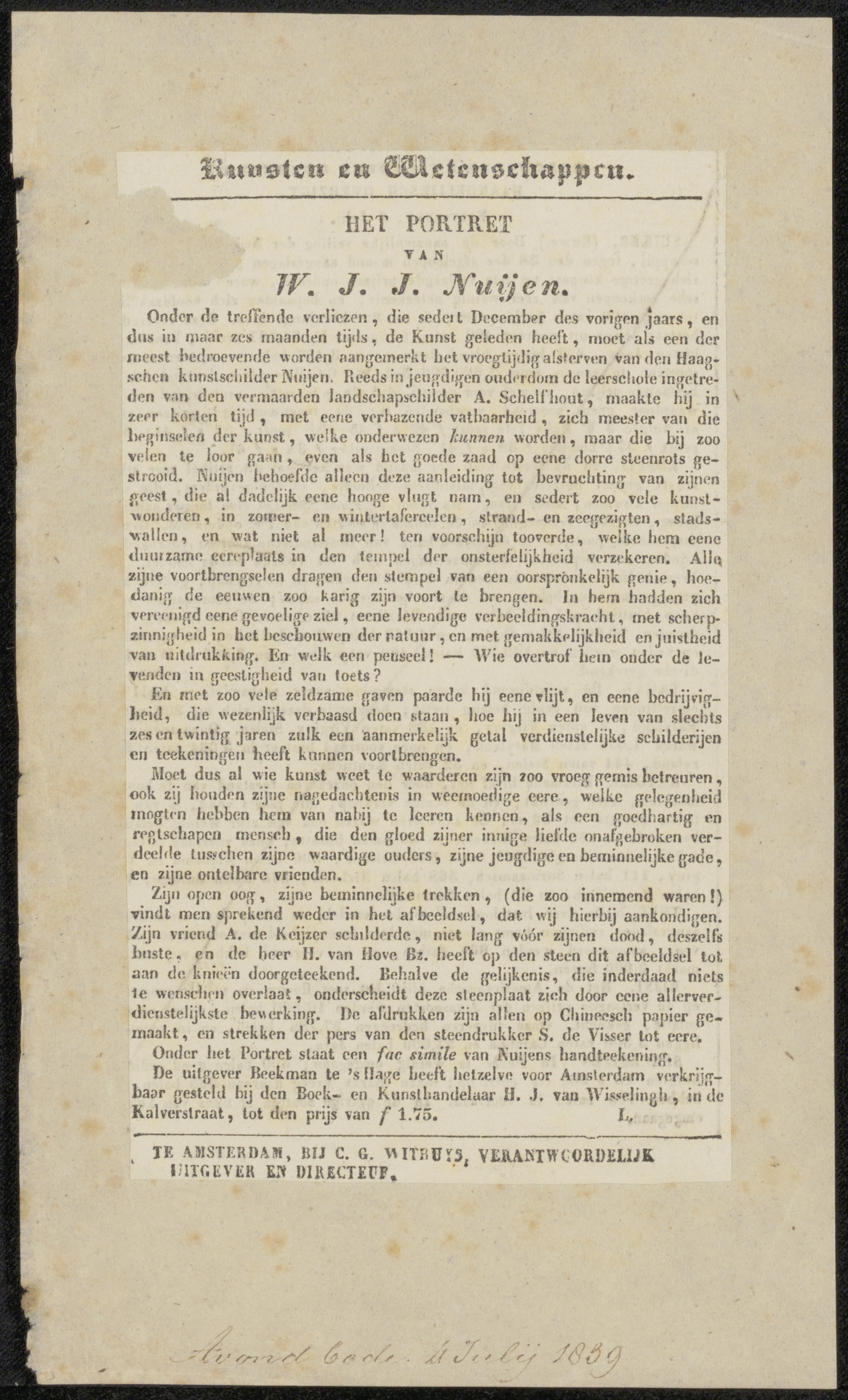 Krantenknipsel betreffende Wijnand Nuijen