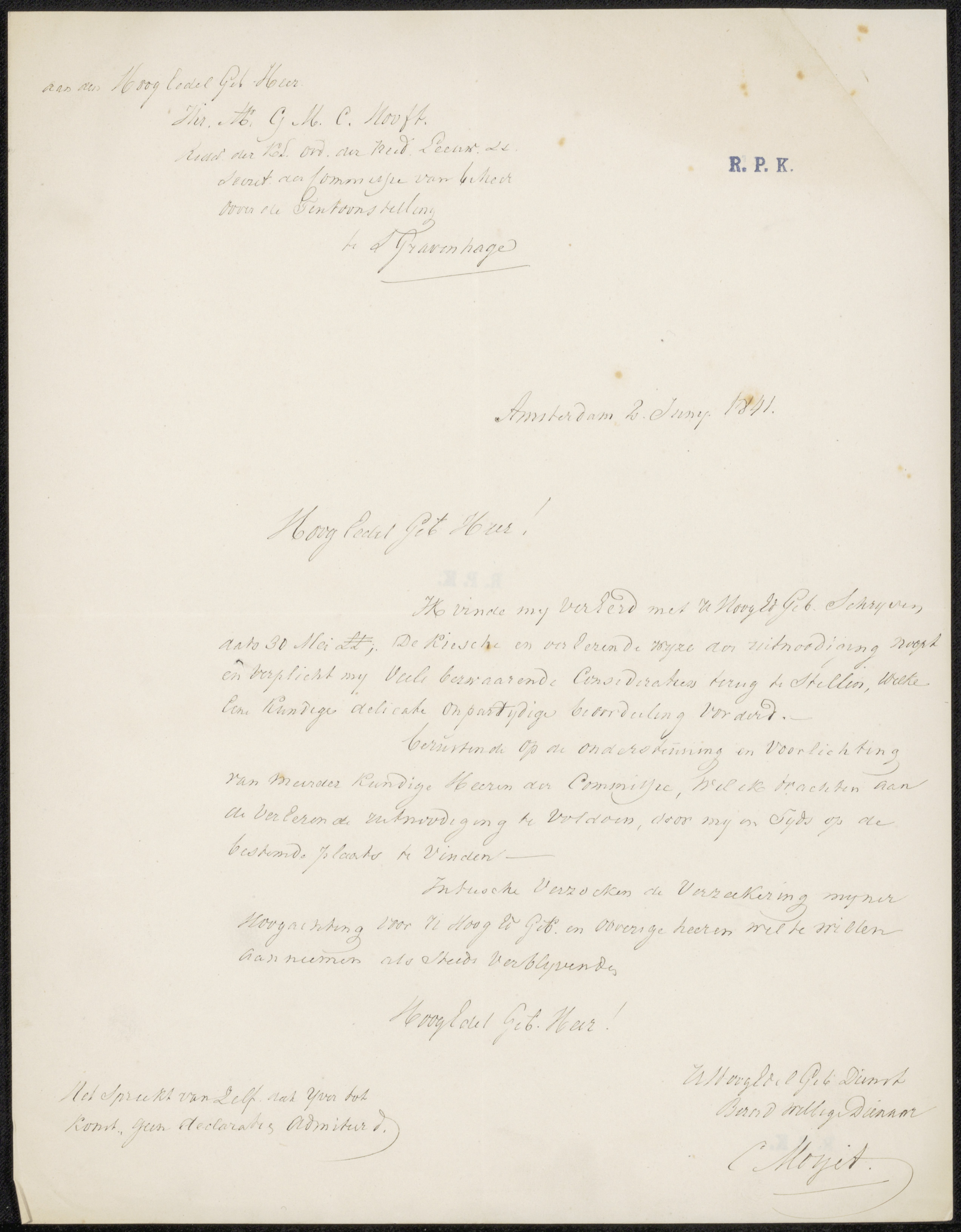 Brief aan de commissie van de Tentoonstelling van Le...