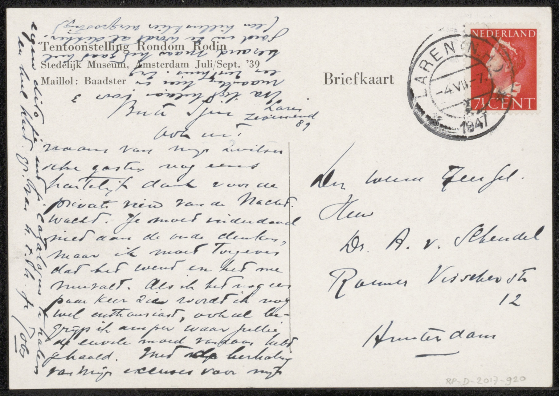 Prentbriefkaart aan Arthur van Schendel (jr.)