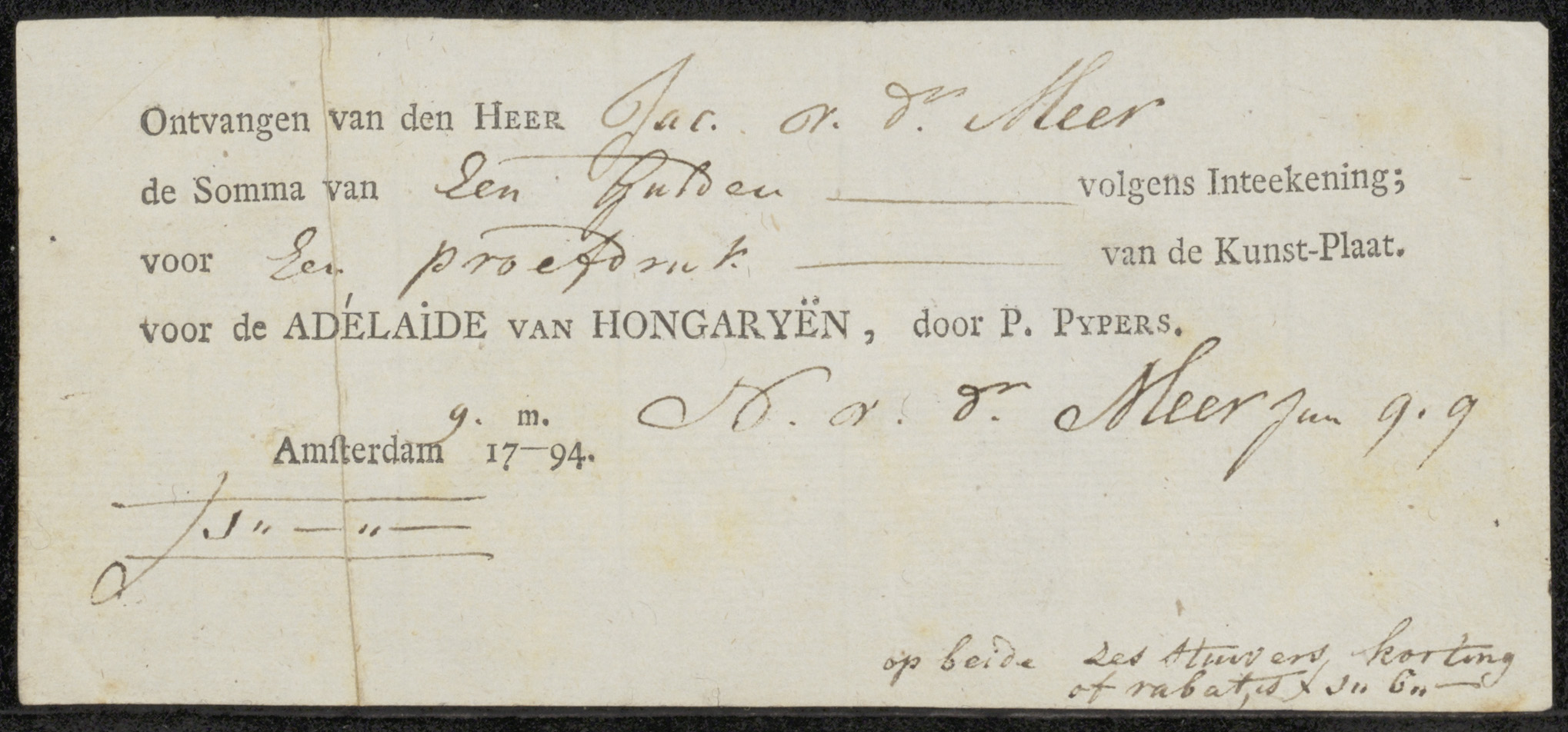 Kwitantie voor Noach van der Meer (II)
