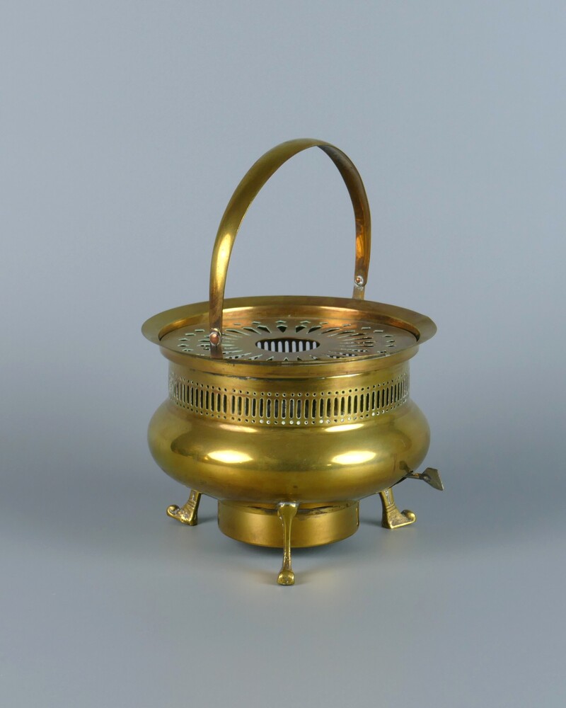 theelichtje van geel koper, met spiritusbrandertje, ...