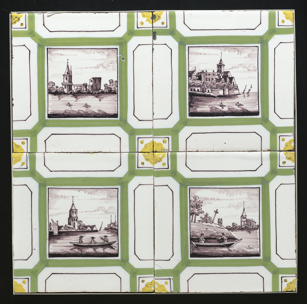 Tegelveld van keramiek, tinglazuur, voorstellende ee...