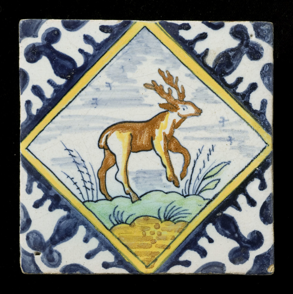 tegel van keramiek met tinglazuur, voorstellende de ...