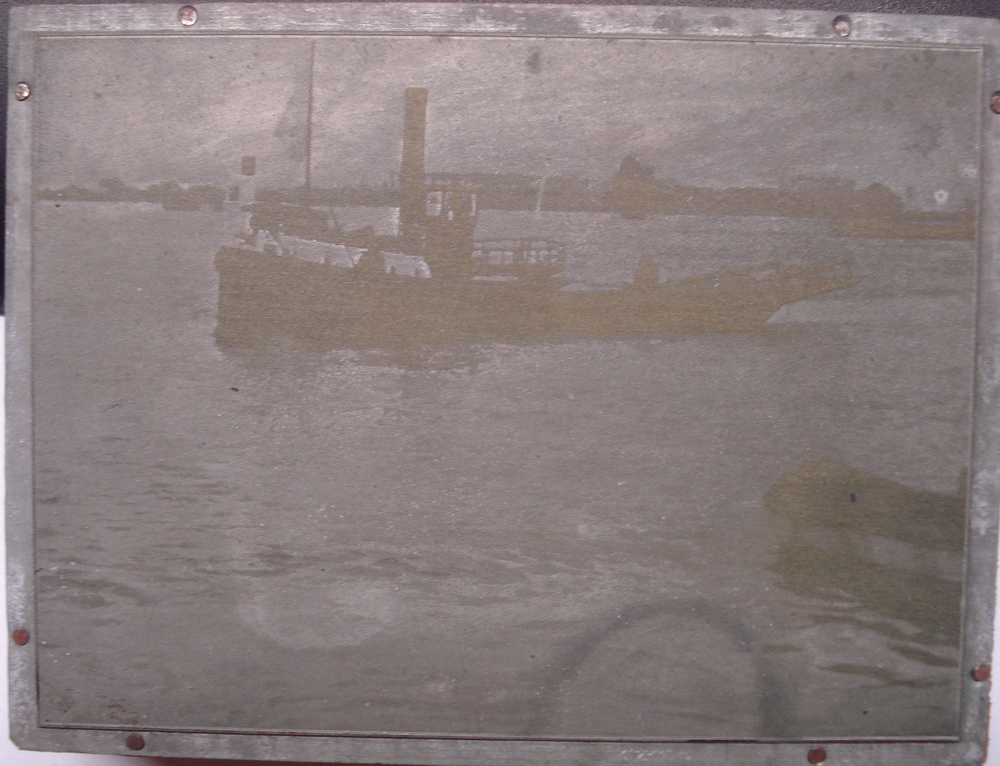 Randtegel in transfer-techniek, met voorstelling: Ge...