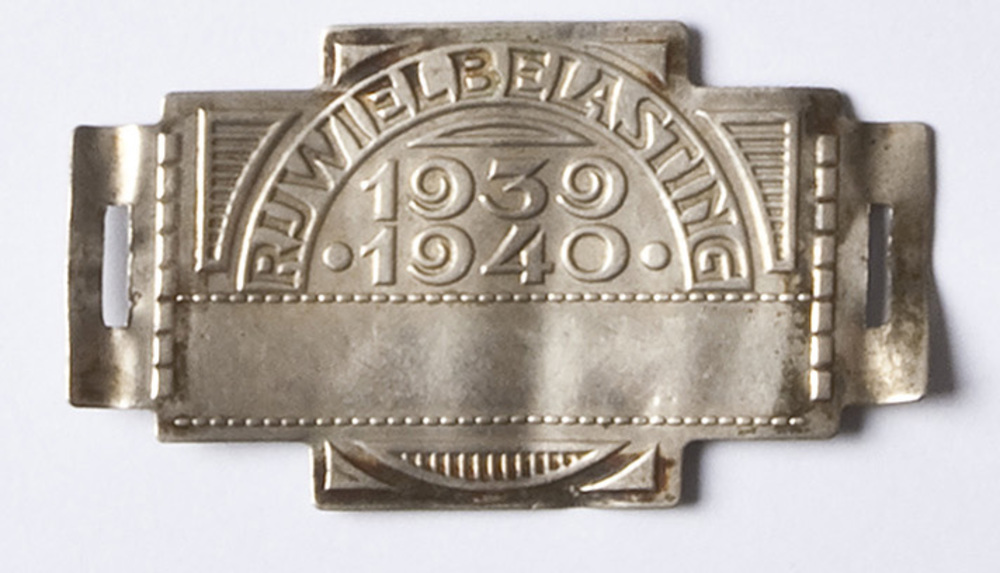 Rijwielbelastingplaatje van nikkel, 1939