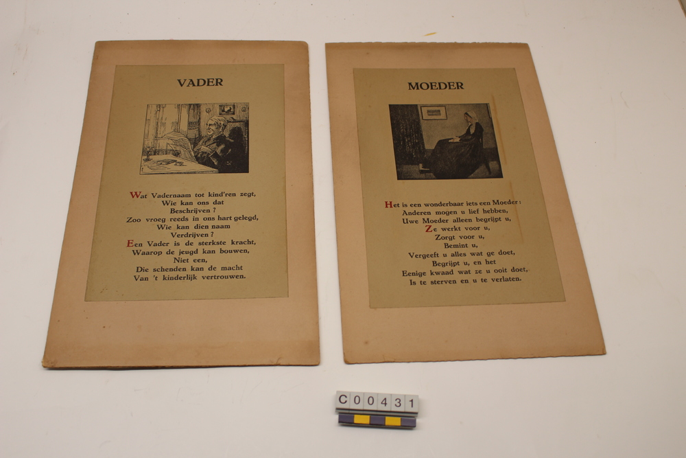 Prent met versje getiteld Vader en Prent met versje ...