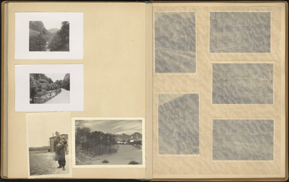 Landschapsfoto's en Duitse militair klaar voor vertrek.