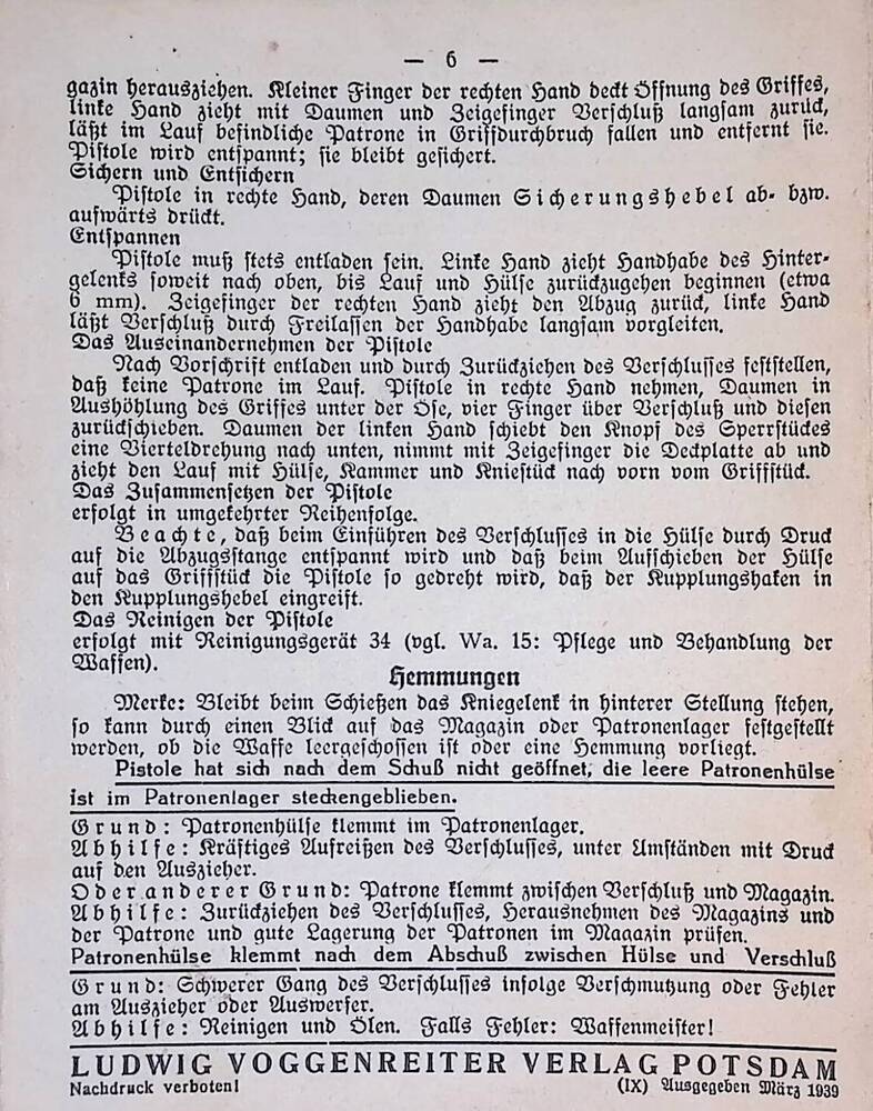 Handleiding, Die Pistole 08.