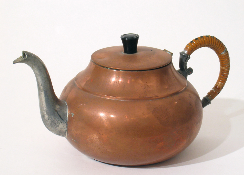 Theepot van deels vernikkeld koper, vervaardigd door...