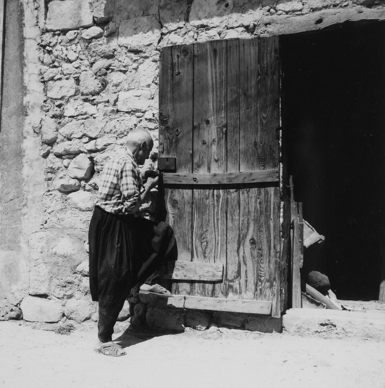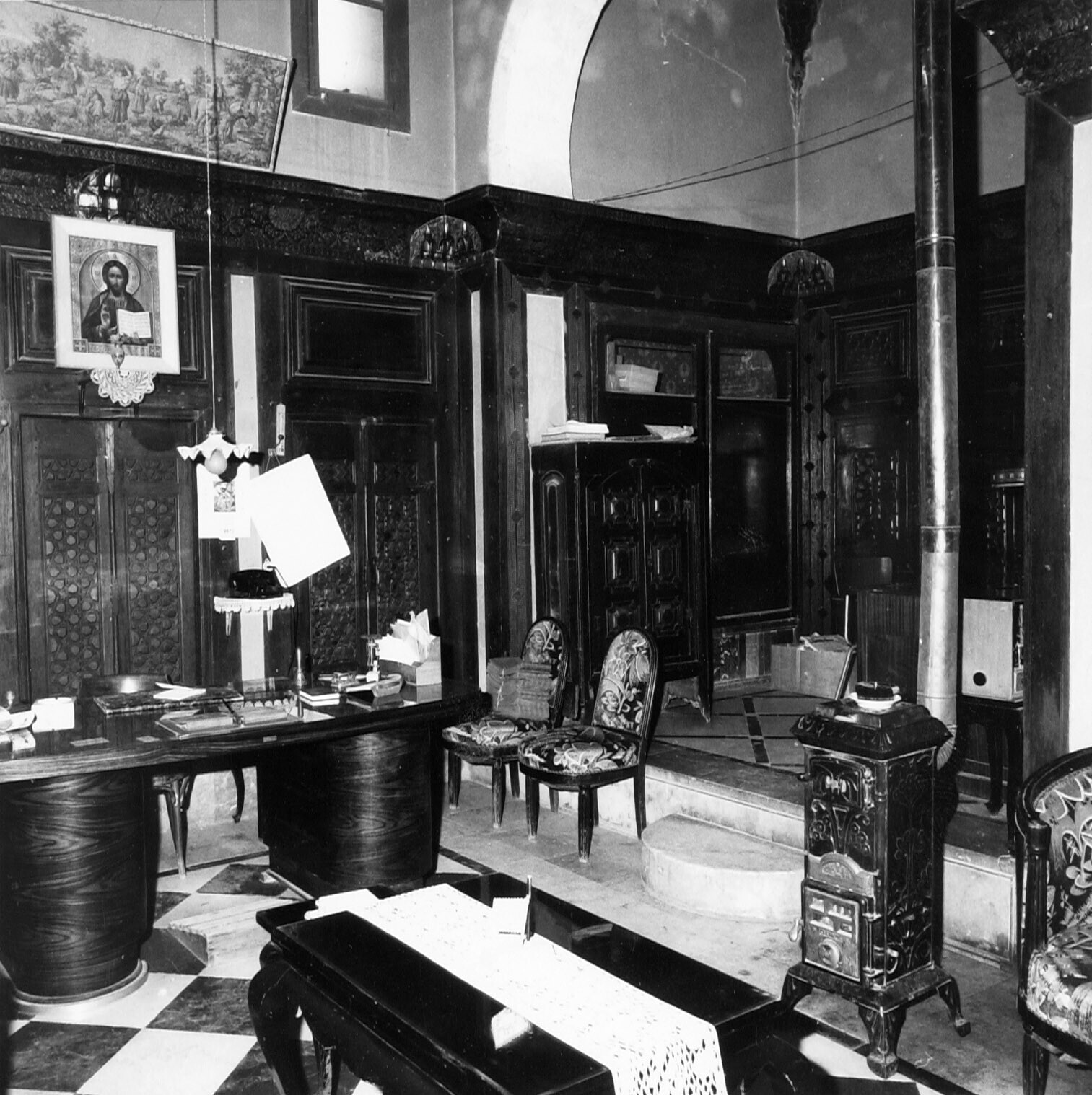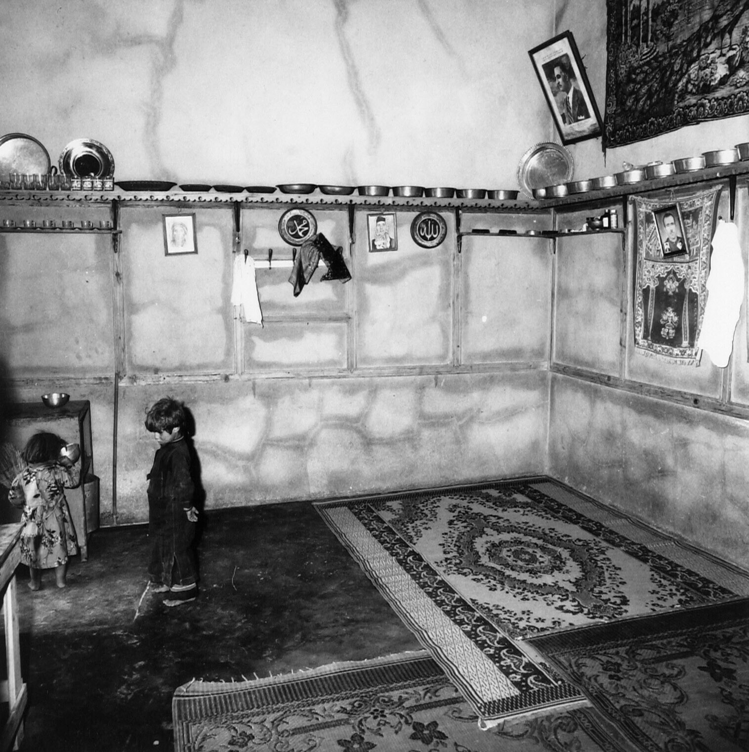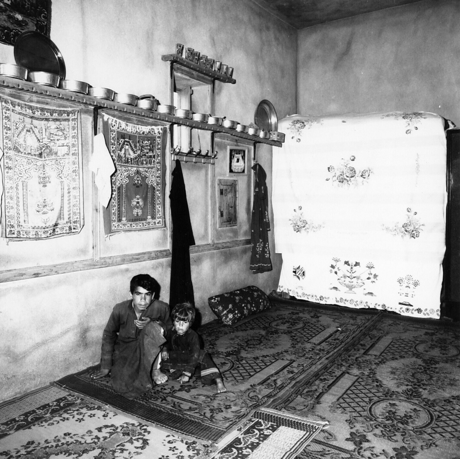 Interieur van een oud Armeense woning, met wit/zwart...