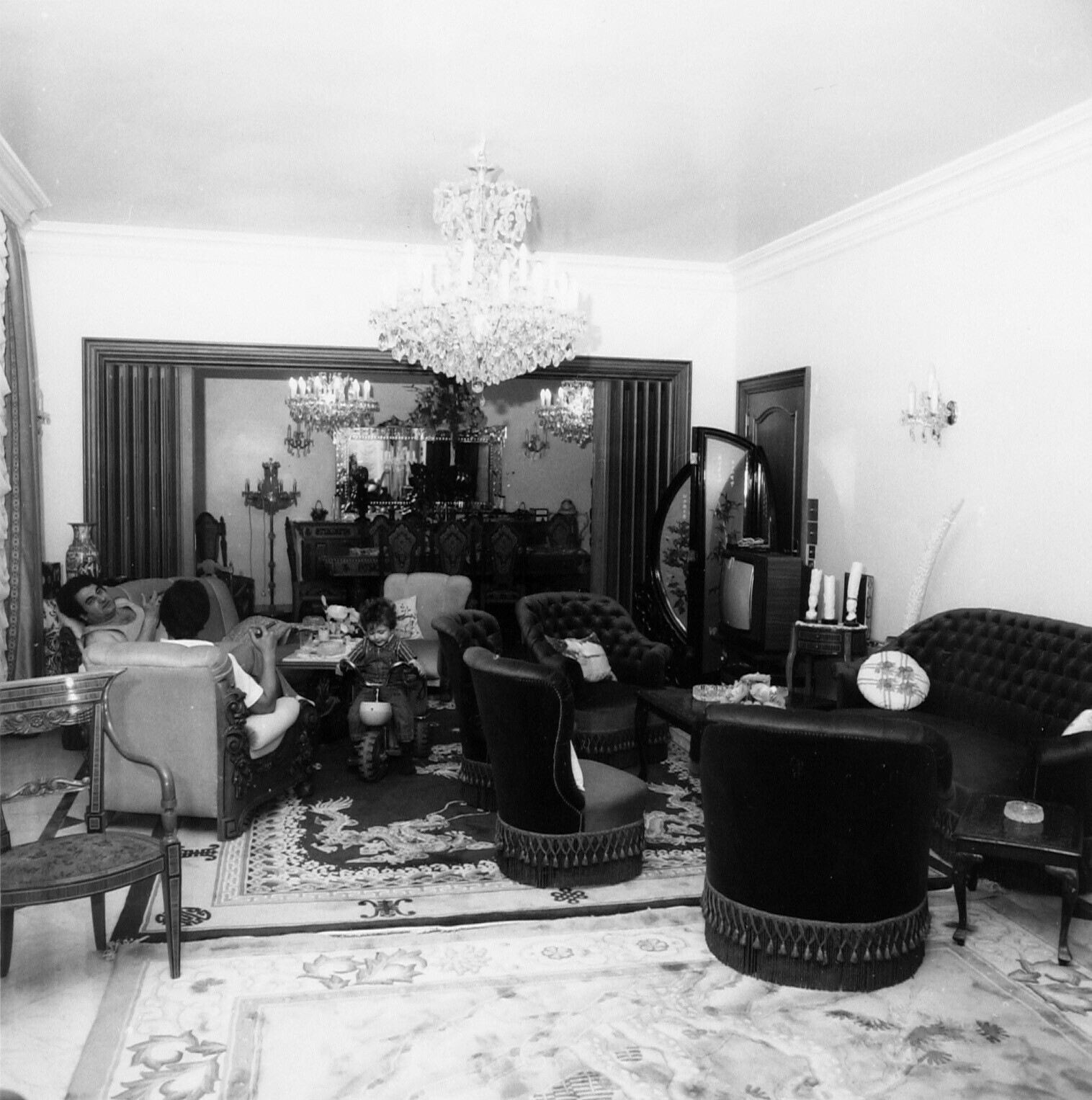 Interieur van een millionairswoning, tafelkleed uit ...